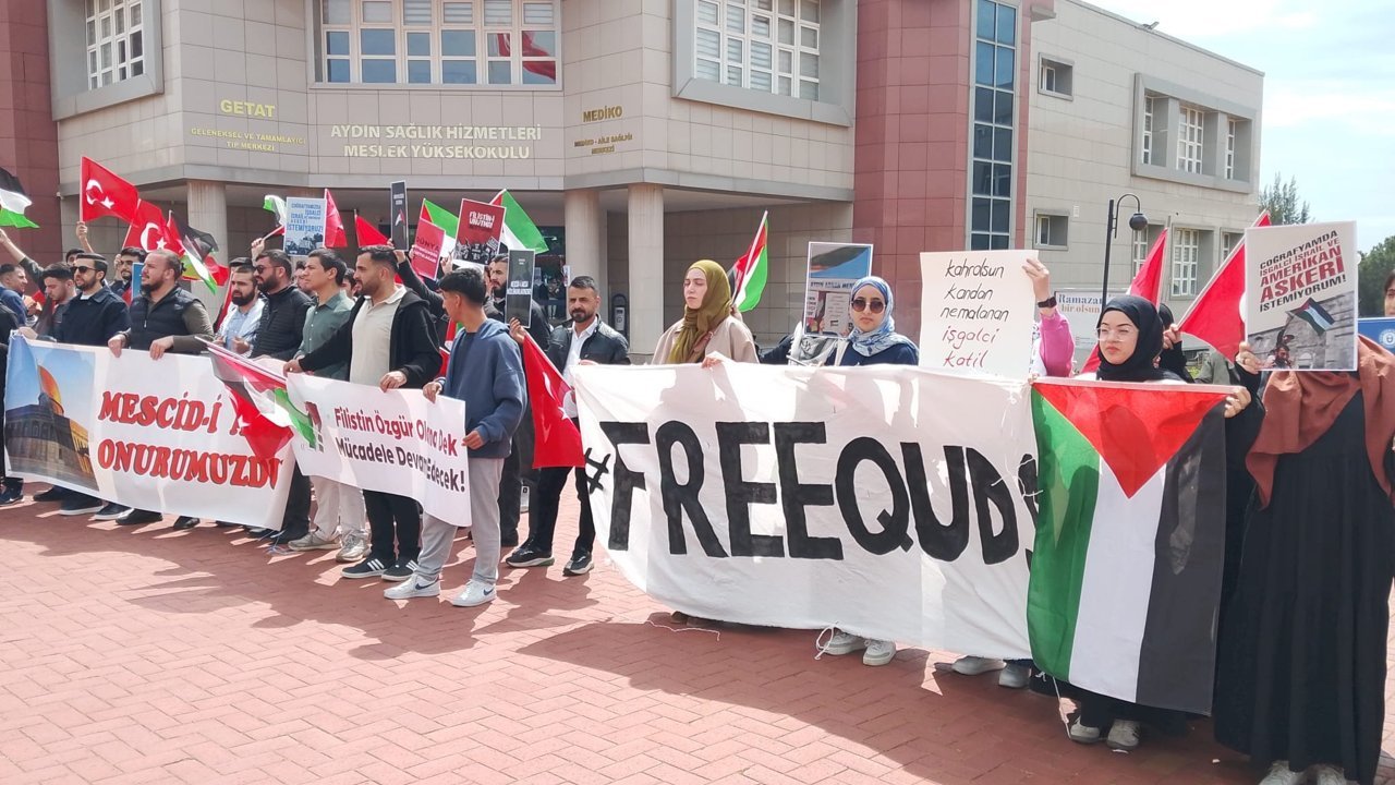 ADÜ Merkez Kampüsü önünde gerçekleşen basın açıklamasında öğrenciler İsrail'in , Filistin saldırılarını protesto eden dövizlerle yer aldılar. Açıklamada İsrail parlamentosunda alınan Filistinli esirlerin insanlık dışı idam kararının kaldırılması, Mescid-i Aksa'nın bir an önce ibadete açılması, Gazze'de ablukanın kaldırılması, insani yardımların ulaştırılmasının önünün açılması ve tüm dünyanın bu soykırıma sessiz kalmaması ifade edildi.