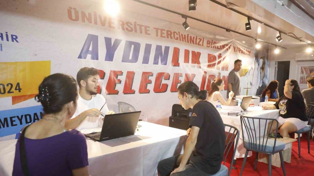 Yükseköğretim Kurumları Sınavı (YKS) sonuçlarının açıklanmasının ardından üniversite tercihleri için öğrenciler, her yıl olduğu gibi bu yılda Aydın Büyükşehir Belediyesi’nin Atatürk Kent Meydanı’nda bulunan tercih tırına yoğun ilgi gösteriyor.