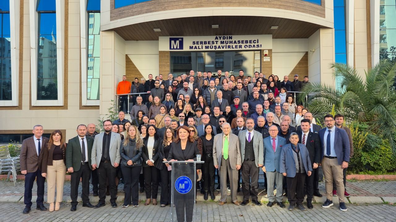 Aydın SMMMO binası önünde basın açıklaması yapan Aydın SMMMO başkanı Jülide Vardar Bekem, vergi sistemimizin temel amaçlarından birisi, adil, şeffaf, izlenebilir, sürdürülebilir mali yapının tesis edilmesi olduğunu belirterek "Bu yapının güçlenmesi için basit usule tabi mükelleflerin gerçek usule geçirilmesinin gerekli olduğu meslek camiamız tarafından öteden beri ifade edilmiş ve bu yolda yapılan çalışmalar Birliğimizce desteklenmiştir. Gerçek usule geçiş, belge düzeni, defter tutma ve beyan sisteminin güçlenmesini sağlamakta; mali verilerin sağlıklı ve doğru üretilmesi, kamu gelirlerinin sürdürülebilirliği açısından önem arz etmektedir. Bu gereklilik ve önem nedeniyle 8/9/2025 tarihli Cumhurbaşkanı Kararı ile Büyükşehir Belediyesi sınırları içerisinde bulunan ve nüfusu otuz bini geçen ilçelerde anılan kararnamede belirtilen faaliyetleri yürüten mükelleflerin 01/01/2026 tarihinden itibaren basit usulden çıkarak gerçek usulde vergilendirilmeleri kararlaştırılmıştır. Ne yazık ki, 13 Aralık 2025 tarihinde yayımlanan 586 sayılı Vergi Usul Kanunu Genel Tebliği ile anılan kararname kapsamında 1 Ocak 2026 tarihinden itibaren gerçek usulde vergilendirilecek olan mükelleflerin, işletme hesabı esasına göre vergilendirildikleri süre zarfında defterlerinin bağlı oldukları meslek odaları/birlikler tarafından tutulmasına ve beyannamelerinin bu Odalar tarafından da gönderilebilmesine izin verilerek atılan olumlu adımların daha da gerisine gidilmesine sebebiyet verilmiştir. Hiçbir hukuki ve teknik gerekçe ile açıklanmayacak ve kendi içerisinde onlarca belirsizlik içeren hukuka aykırı bu yetkilendirmenin nasıl bir amaca hizmet ettiğini anlamak maalesef mümkün değildir." dedi .
