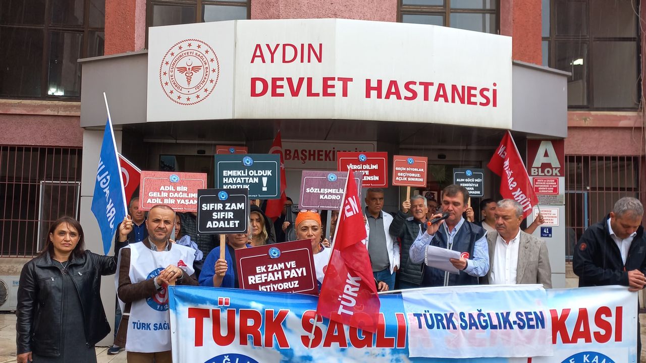 Sağlık çalışanlarının sorunlarını dile getirmek amacıyla Türk Sağlık Sen Aydın Şubesi tarafından sendika yönetimi ve üyelerin katılımıyla Aydın Devlet Hastanesi bahçesinde basın açıklaması yapıldı. Türk Sağlık Sen Aydın Şube Başkanı Hüseyin Doğan, yaptığı açıklamada, "Bu ay sağlık kurumlarında çalışan sağlık meslek mensuplarının teşvik ödemelerinde yüzde 50’ye varan büyük düşüşler yaşandığı görülmüştür. Kamuoyunda, sağlık çalışanlarının teşvik ödemeleri azaltılarak hekimlerin ödemelerinde artış yapıldığı izlenimi oluşsa da bu düşüşten tüm sağlık çalışanları mağdur edilmiştir. Böyle bir uygulama, sağlık çalışanlarının ekonomik dengelerini olumsuz etkilemektedir" dedi.