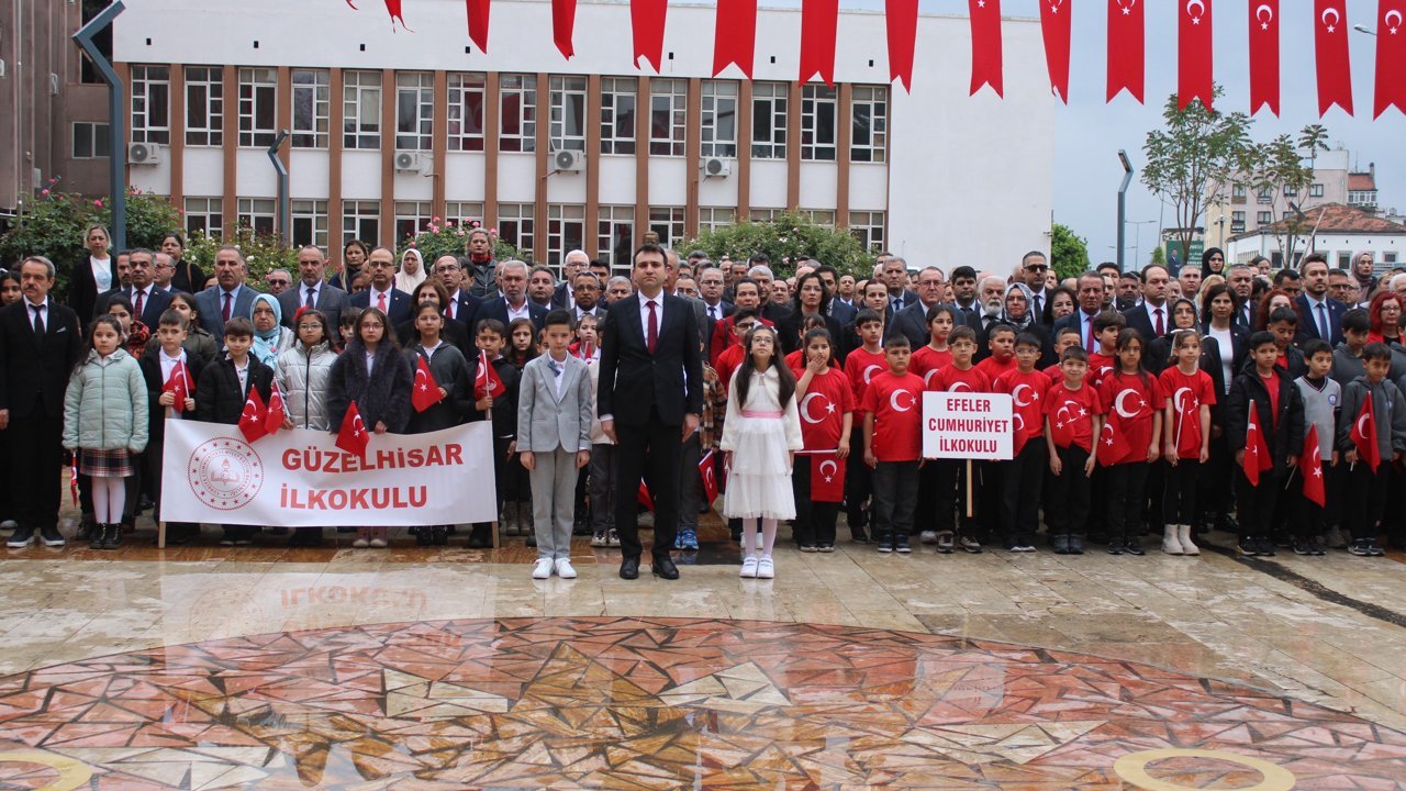 Türkiye Büyük Millet Meclisi'nin kuruluşunun 106. yıldönümü ve 23 Nisan Ulusal Egemenlik ve Çocuk Bayramı dolayısıyla ilk olarak Aydın Valiliği önündeki Atatürk büstüne İl Milli Eğitim Müdürlüğü tarafından çelenk sunuldu. Saygı duruşu ve İstiklal Marşı'nın okunmasının ardından program son buldu. 23 Nisan kutlamaları Mimar Sinan Kapalı Spor Salonu'ndaki kutlama töreni ile ve gün boyunca sürecek diğer etkinliklerle devam edecek.