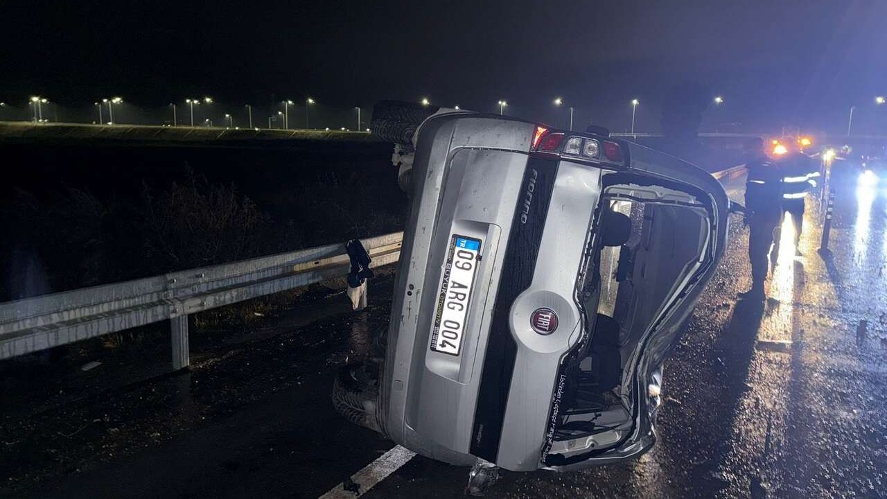 Direksiyon hakimiyetini kaybeden araç devrildi