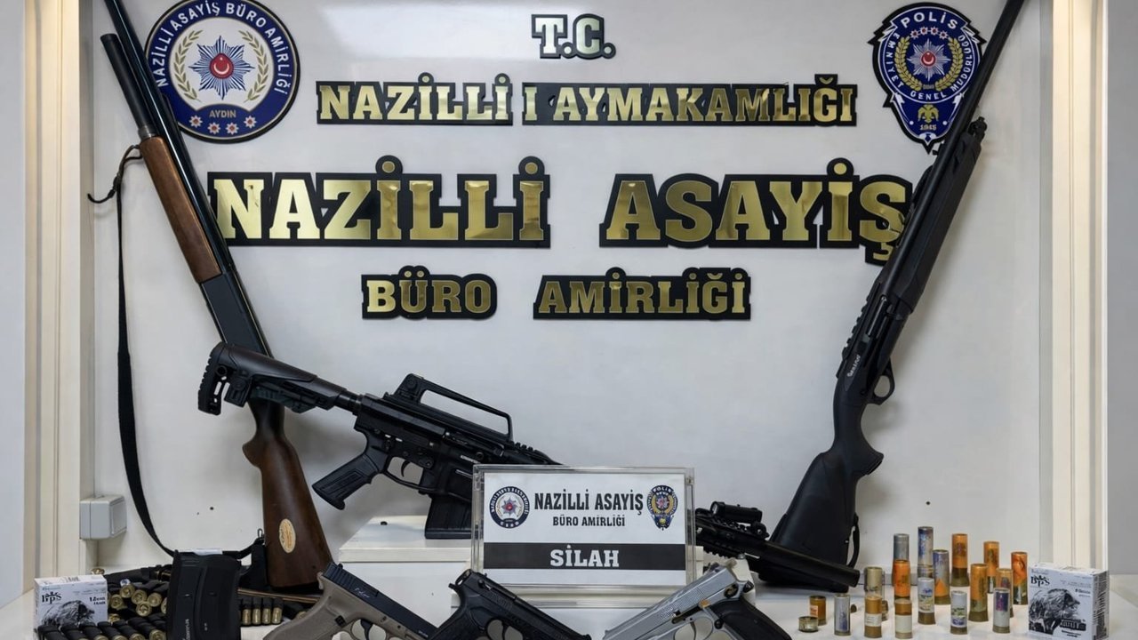 Nazilli İlçe Emniyet Müdürlüğüne bağlı ekipler sosyal medya üzerinden silahlı paylaşım yapan V.P., Ş.K. ve H.K.’nın adreslerini tespit etti. Bugün akşam saatlerinde belirlenen adreslere operasyon düzenleyen ekipler 3 şüpheliyi gözaltına aldı. Ev ve eklentilerinde yapılan aramalarda ise 3 av tüfeği, 167 av tüfeği kartuşu, 5 kuru sıkı tabanca ve bu tabancalara ait 86 adet fişek ile 1 airsoft olarak tabir edilen tabanca ele geçirildi. Gözaltına alınan 3 şüphelinin işlemlerinin sürdüğü öğrenildi.
