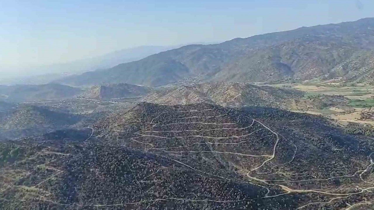 Ekiplerin yoğun müdahalesi ile yangın kontrol altına alınırken, yanan bölge havadan helikopter ile görüntülendi. Soğutma çalışmaları ise devam ediyor.