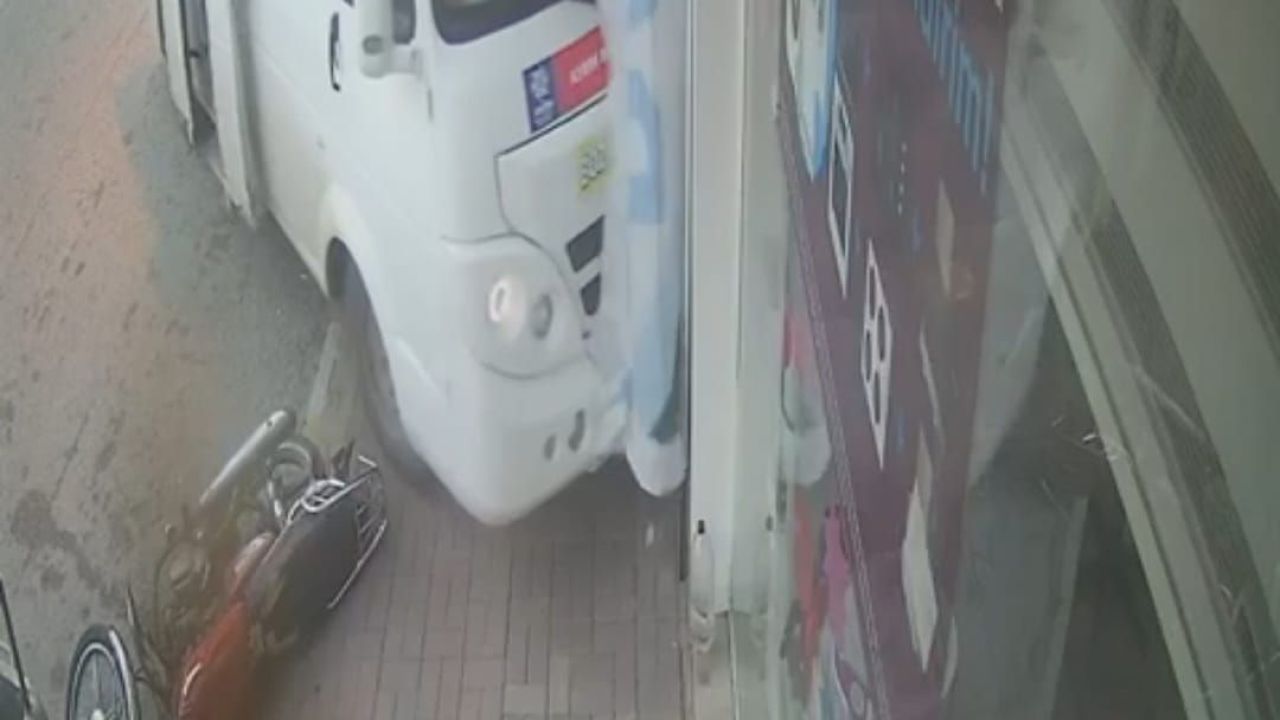 Sürücünün ayrılmasından kısa bir süre sonra, yol eğiminin de etkisiyle minibüs kendiliğinden hareket etmeye başladı. Hızlanan minibüs, kontrolden çıkarak cadde üzerinde bulunan bir beyaz eşya dükkanının vitrin camlarını kırarak içeri girdi.