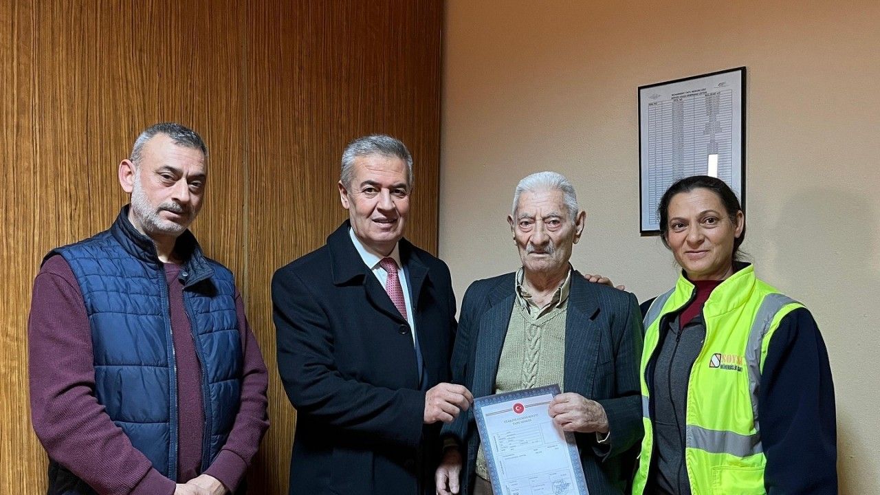 Vatandaşların tapularını teslim eden Başkan Erol, “Kızıldere Mahallemizde yapılan parselasyona göre ilgili parselin tapu devir işlemi Mustafa Karasakal’a yapılmıştır. Hayırlı olsun" dedi.