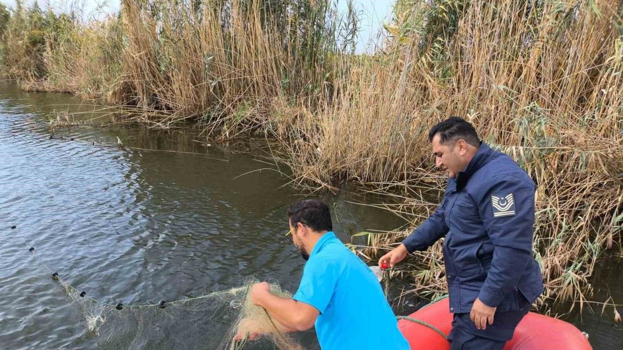 Söke İlçe Tarım Müdürlüğü ve Aydın İl Jandarma Komutanlığı ekipleri Büyük Menderes Havzası’nda denetim gerçekleştirdi. Yapılan denetimlerde kullanımı yasak ağlar tespit edilerek imha edildi.