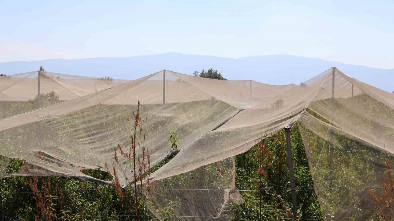 Aydın’da meyve üreticileri, ağaçların dolu ve kırağı gibi hava olaylarından etkilenmemesi amacıyla kullandıkları file sistemi, üreticilerin adeta doğal sigortası oldu.