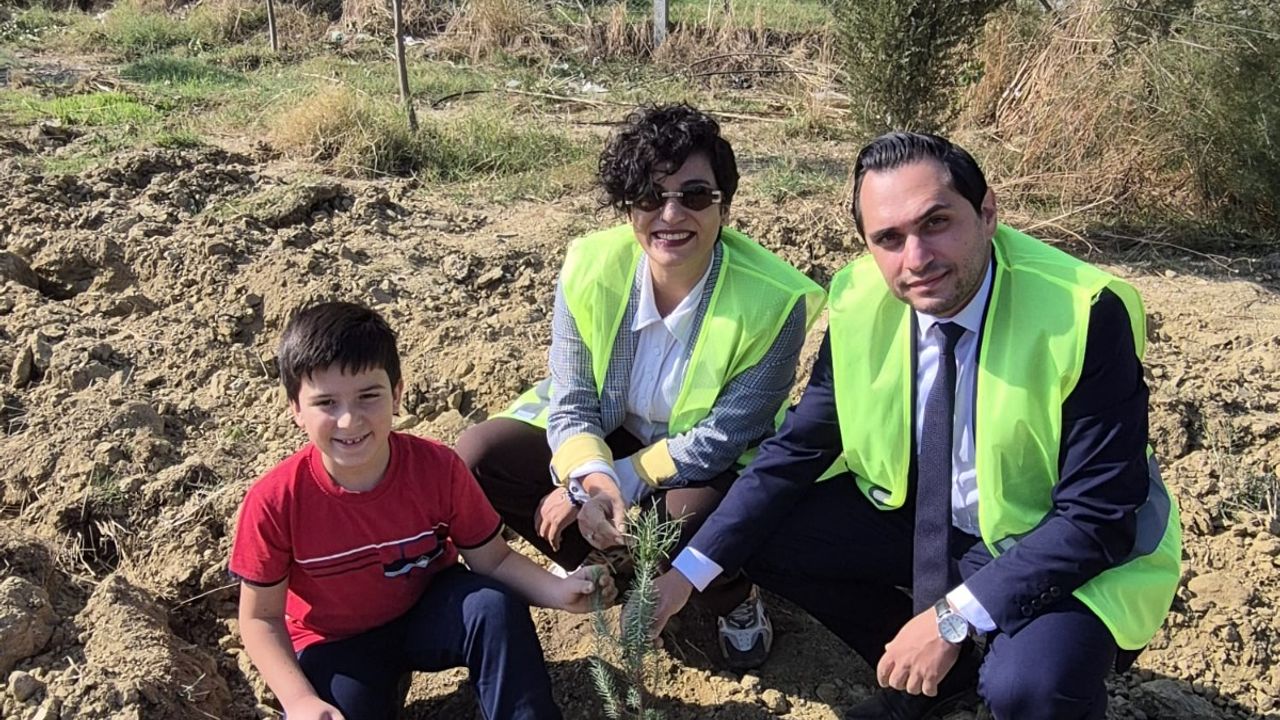 Efeler İlçesi Ovaeğmir Mahallesi'nde bulunan arazide 3. sınıf öğrencileri fıstık Çamı fidanlarını toprakla buluşturmanın mutluluğunu yaşadı.