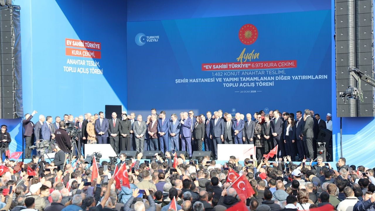 Aydın Şehir Hastanesi başta olmak üzere il genelinde tamamlanan yatırımların toplu açılışı için Aydın'a gelen Cumhurbaşkanı Recep Tayyip Erdoğan, tören alanında Aydınlılarla buluştu. 'Ev sahibi Türkiye' projesi kapsamında 6 bin 973 kura çekiminin de yapıldığı törende konuşan Cumhurbaşkanı Erdoğan; 'Aydın, Büyük Menderes bereketiyle, zeytini, inciri, çalışkanın insanıyla Türkiye'nin yüz akı şehirlerinden birisidir. Aydın'ın bizim gönlümüzde her zaman müstesna bir yeri vardır. Bizi bağrınıza bastınız, kucakladınız. Bugün bir kez daha Efeler şehri, merhum Adnan Menderes'in şehri olduğunuzu gösterdiniz. Ahde vefanız için her birinize teşekkür ediyorum. Sizin güveninizi boşa çıkarmamanın çabası içindeyiz. Aydın'a mahcup olmamak için gece gündüz çalışıyoruz. Aydın için seferber olmuş durumdayız. Devletimizin tüm kurumları tam bir işbirliği içinde Aydın'ı daha güzelleştirmenin, kalkındırmanın çabası içindeler. Toplam değeri 87,5 milyar TL'yi aşan yatırımları şehrimizin hizmetine sunuyoruz. 64 bin metrekare alana yayılan 4 Millet Bahçemizi hizmete açmıştık. Yapımı devam eden 4 Millet Bahçemizi de inşallah çok kısa sürede tamamlayacağız' dedi.