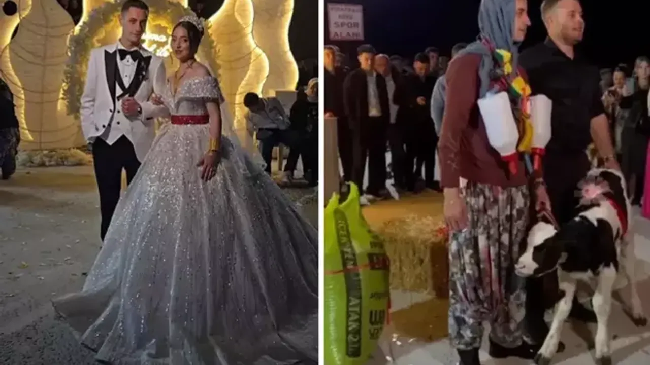 Düğünde, hayvancılıkla geçimini sağlayan damada yapılan şakalar, sınırları ZORLADI! Gelin Pınar Acar'a takı töreninde BUZAĞI hediye edilirken, damat Harun Acar'a ise arkadaşları ve akrabaları tarafından AT hediye edildi! Damat, bu İNANILMAZ hediyeler karşısında NE DİYECEĞİNİ BİLEMEDİ!