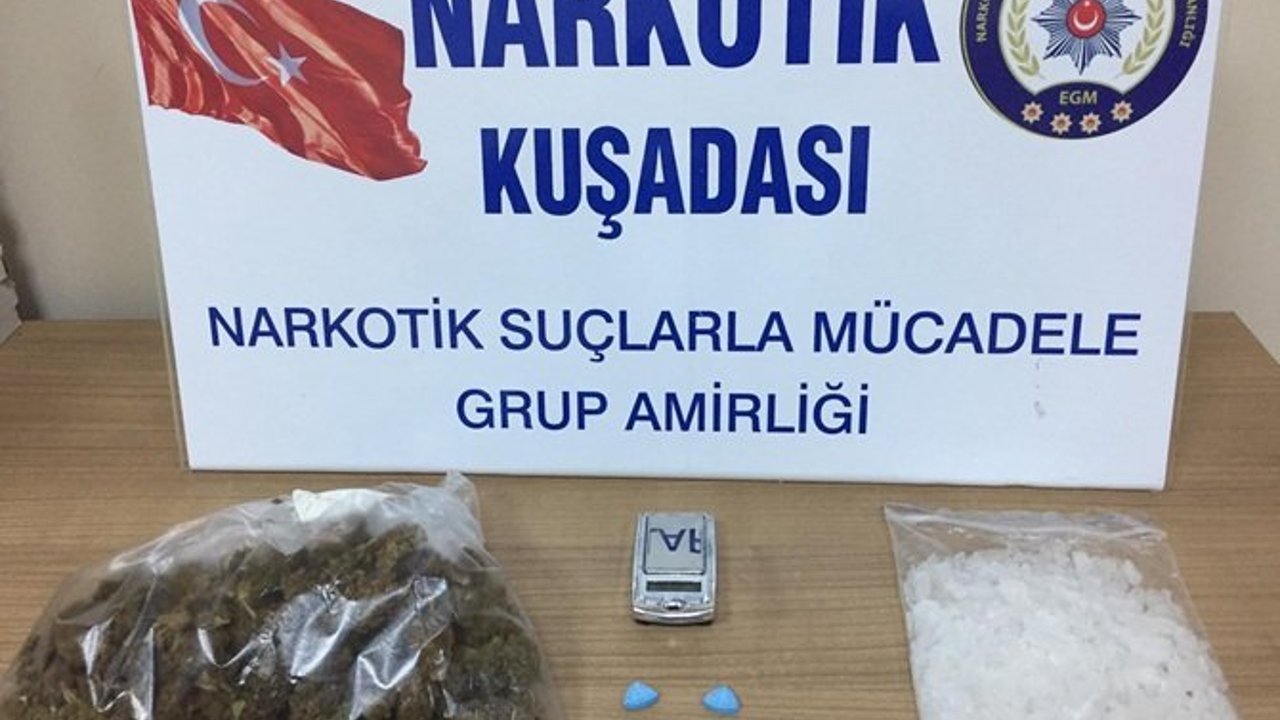 Edinilen bilgiye göre, Kuşadası Emniyet Müdürlüğü Narkotik Suçlarla Mücadele Grup Amirliği’ne bağlı ekipler, Davutlar’da bir evde uyuşturucu madde satıldığı yolunda ihbar aldı. Söz konusu evi fiziki takibe alan narkotik ekipleri, gece yarısı saat 00:15 sıralarında evin çevresinde M.B. isimli bir şüpheliyi durdurdu. Yapılan üst aramasında 1.43 gram Skunk Esrar Maddesi ele geçirilen M.B. gözaltına alındı. Narkotik ekipleri, ardından ise söz konusu eve operasyon düzenlendi. Operasyonda evde bulunan M.K. isimli şüpheli gözaltına alınırken, evde yapılan yapılan aramalarda 5 Adet Extasy uyuşturucu hap, 52 gram kristal olarak tabir edilen metamfetamin uyuşturucu madde, 58 gram skunk esrar maddesi ve 1 adet hassas terazi ele geçirildi. Operasyonda gözaltına alınan M.B. ve M.K. isimli şüpheliler soruşturma için Kuşadası Emniyet Müdürlüğü’ne götürüldü.