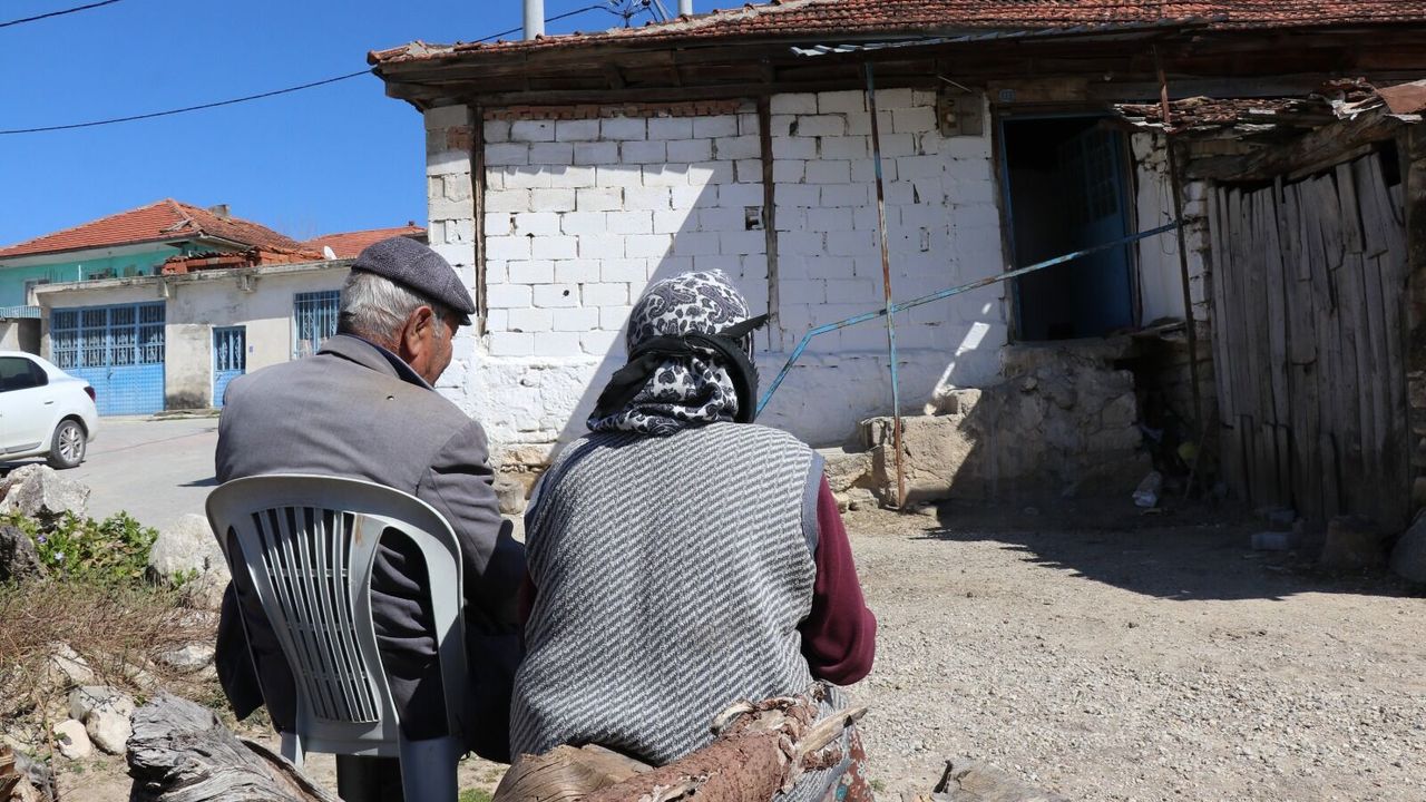 Denizli’de meydana gelen 5.1 büyüklüğündeki depremde evleri hasar gören yaşlı çift, yetkililerin girilmemesi için uyardıkları evlerinin önünde bekliyor.