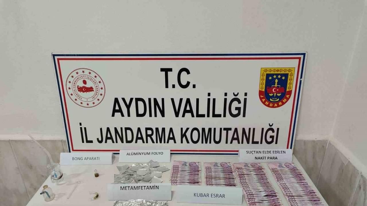 Didim İlçe Jandarma Komutanlığı tarafından Didim’de M.T. isimli şahsın ikametinde yapılan çalışmalar kapsamında arama gerçekleştirildi. Yapılan aramalarda, 95 gram Metamfetamin, 20 gram Kubar esrar çok miktarda nakit para, 1 adet hassas terazi, 2 adet uyuşturucu aparatı ele geçirildi. Şahıs sevk edildiği adliyede tutuklanarak cezaevine teslim edildi.(İHA)