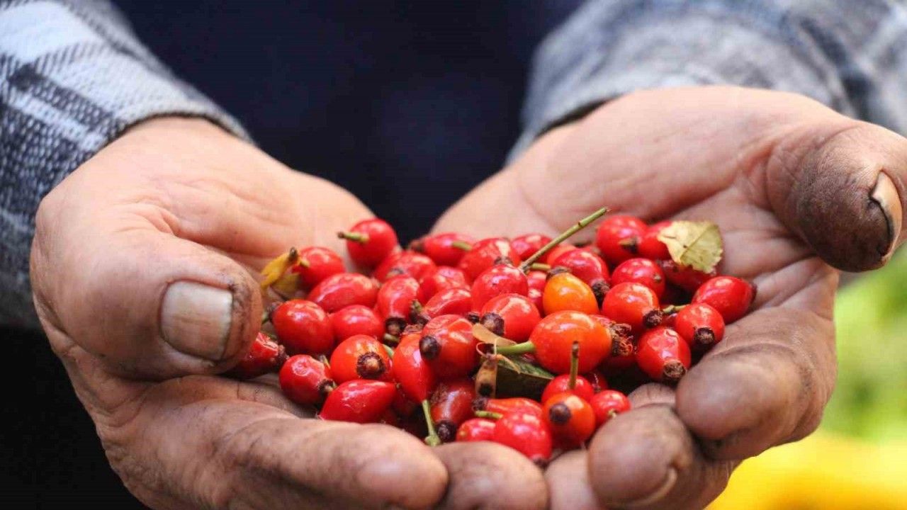 Aydın’ın dağlarından binbir zahmetli toplanan, kış aylarında tercih edilen kuşburnuna rağbet artarken pazar tezgahlarındaki yerini aldı.