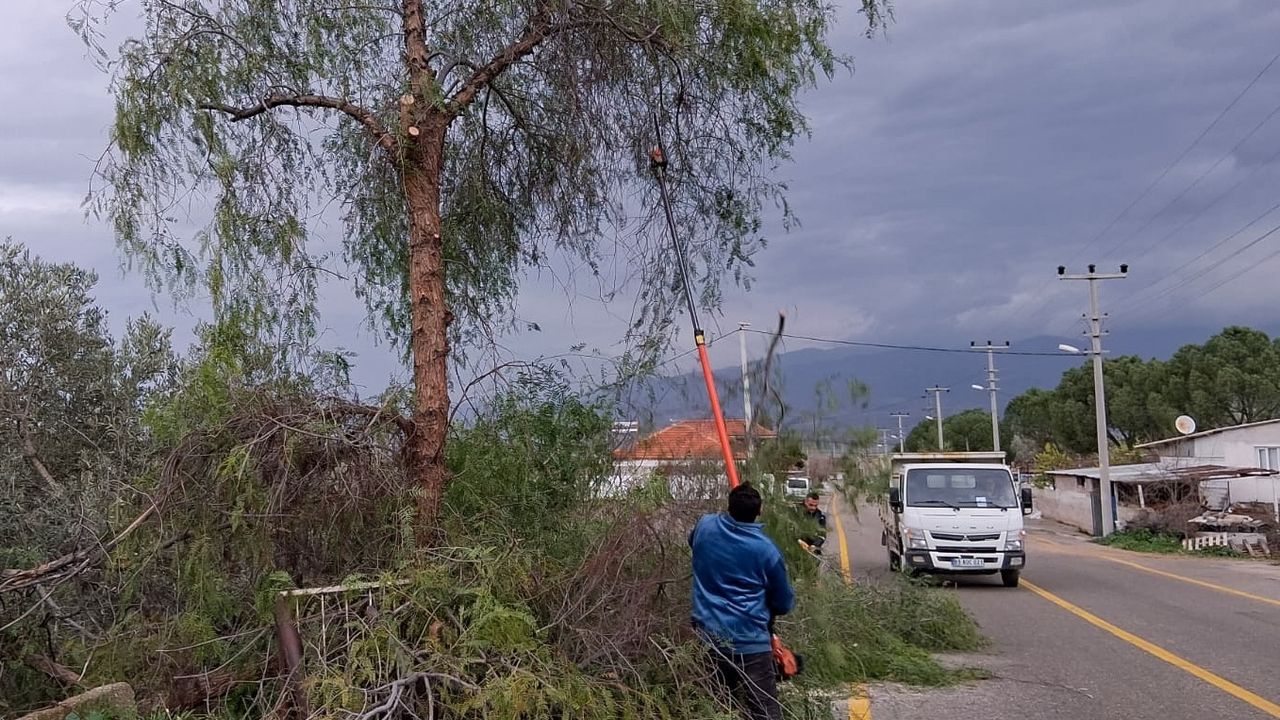 Öte yandan Şahnalı Mahallesi’nde fırtına nedeniyle yola devrilen elektrik direkleri de Efeler Belediyesi ekiplerinin hızlı ve etkili çalışmasıyla kısa sürede kaldırıldı. Yapılan müdahalenin ardından yol yeniden güvenli şekilde ulaşıma açıldı.