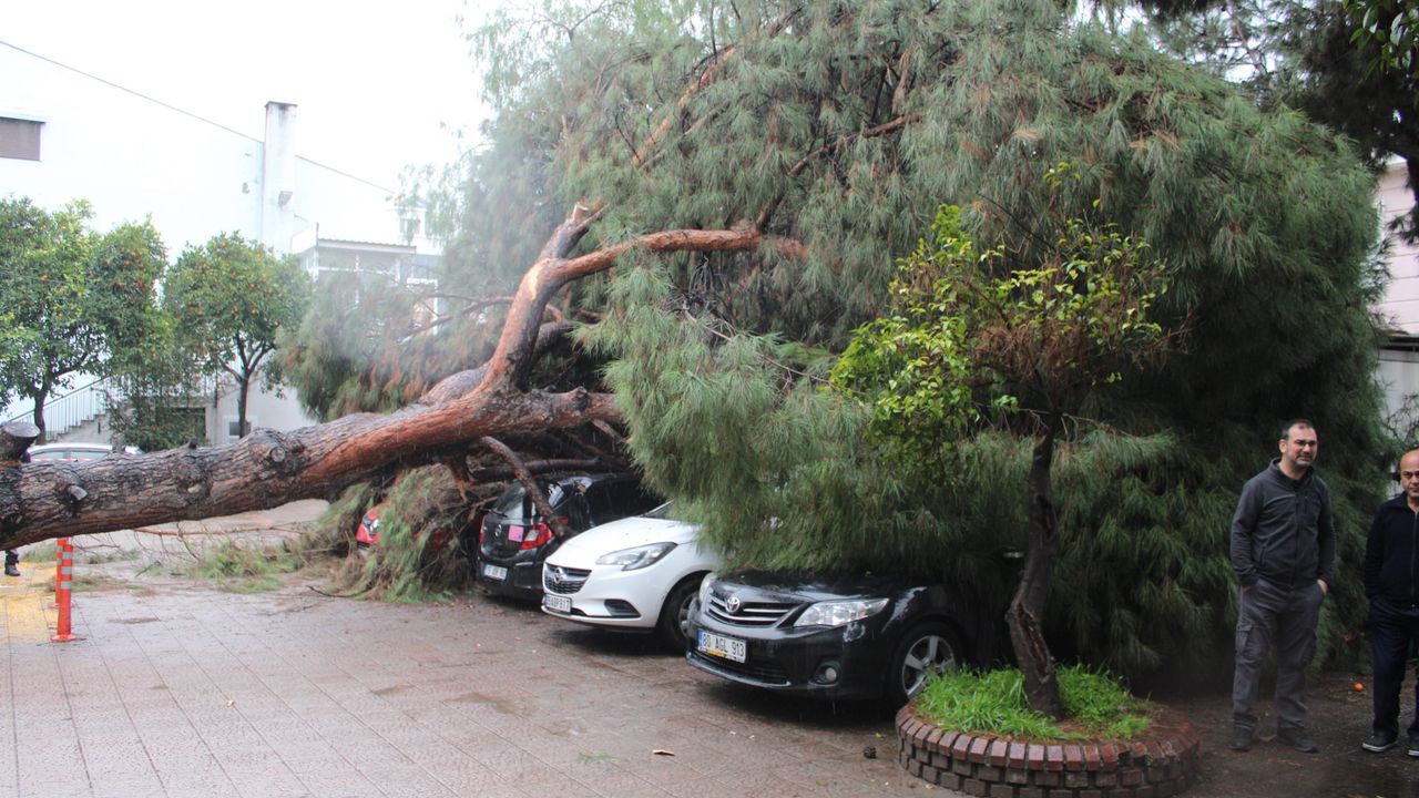 Olay, Hasanefendi Mahallesi Kızılay Caddesi üzerinde bulunan Aydın Devlet Hastanesi ek bina bahçesinde bugün saat 10.30 sıralarında meydana geldi. Edinilen bilgiye göre, hastane bahçesinde bulunan dev çam ağacı henüz bilinmeyen bir nedenle kökünden koparak devrildi. Bahçede park halinde bulunan 4 aracın üzerine düşen çam ağacı araçlar da büyük çaplı maddi hasara yol açarken, o esnada bölgeden geçen bir kadın ise ağacın altına kalmaktan son anda kurtuldu. İhbar üzerine bölgeye itfaiye ve polis ekipleri sevk edildi. Kısa sürede olay yerine gelen ekipler ve hastane güvenlik görevlileri bölgede önlem alırken, araç sahipleri de çaresizce araçlarının kurtarılmasını bekledi. Şans eseri yaralanma ve can kaybının yaşanmadığı olay sonrasında bölgeye sevk edilen belediye ekipleri tarafından ağacın bulunduğu yerden kaldırılması için çalışma başlatıldı. (İHA)