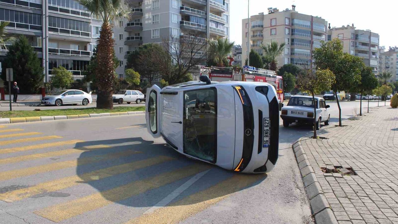Kaza, Efeler ilçesi Mimar Sinan Mahallesi Efekent Bulvarı ile Yörük Ali Efe Bulvarı üzerindeki kavşakta meydana geldi. Edinilen bilgiye göre, Yörük Ali Efe Bulvarı üzerinde seyir halinde olan B.M. idaresindeki 09 AEK 621 plakalı otomobil ile Efekent Bulvarı üzerinde seyir halinde olan V.Y. idaresindeki 16 BN 627 plakalı hafif ticari araç, kavşakta çarpıştı. Çarpışmanın etkisiyle iki araç da savrulurken, ticari araç yolda yan yattı. Kazada, ticari araçta yolcu konumunda bulunan E.Y. yaralandı. Kazayı görenler durumu 112 Acil Çağrı Merkezi'ne bildirdi. İhbar üzerine bölgeye itfaiye, polis ve sağlık ekipleri sevk edildi. Kısa sürede bölgeye gelen sağlık ekipleri, yaralıyı ilk müdahalenin ardından ambulansla hastaneye kaldırdı. Yolda gerekli güvenlik önemlerinin alınmasının ardından, araçlar çekici marifetiyle kaldırıldı. Yola dağılan araç parçları ise bölgeye gelen Aydın Büyükşehir Belediyesi ekiplerince temizlenmesinin ardından yol yeniden trafiğe açıldı. Kazada yaralanan gencin, hayati tehlikesinin bulunmadığı öğrenilirken, kaza ile ilgili inceleme başlatıldı. (İHA)