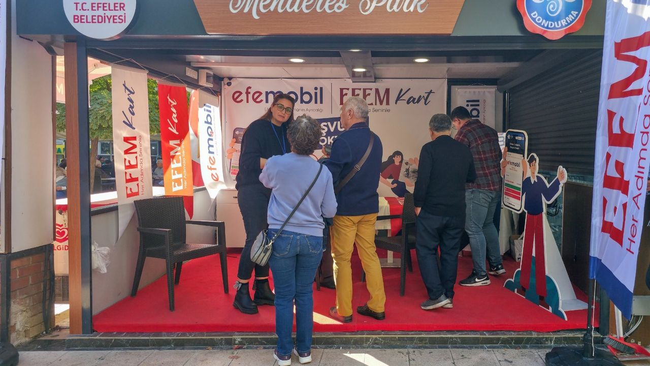 Efem Kart başvuruları, Menderes Park’ta kurulan stantta yoğun katılımla devam ederken, projeye gösterilen ilgi Başkan Anıl Yetişkin’in sosyal belediyecilik vizyonunun kentte güçlü bir karşılık bulduğunu ortaya koyuyor.