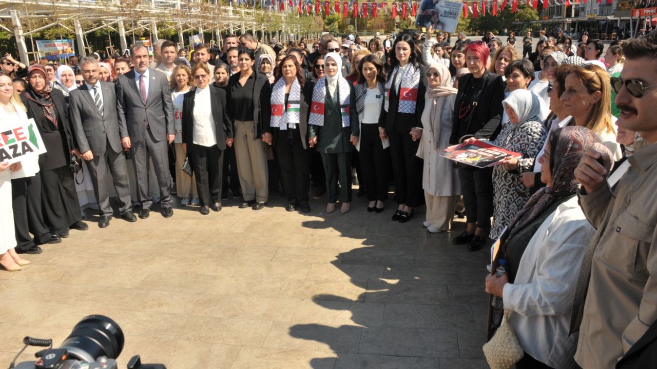 Bir dizi ziyaret kapsamında kente gelen Aile ve Sosyal Hizmetler Bakanı Mahinur Özdemir Göktaş, etkinlikte kadınlarla bir araya geldi. Meydandaki buluşmaya ayrıca Aydın Büyükşehir Belediye Başkanı Özlem Çerçioğlu, AK Parti Milletvekilleri Seda Sarıbaş ve Ömer Özmen, AK Parti İl Başkanı Mehmet Erdem, ilçe belediye başkanları, partililer ve çok sayıda kadın katıldı. Kadınlar, ellerinde “Katil İsrail” ve “Özgür Filistin” yazılı dövizlerle Gazze halkına destek verirken, meydanda duygusal anlar yaşandı. Aydın’daki etkinlik, kadınların vicdanları harekete geçiren güçlü mesajlarıyla yankı buldu.