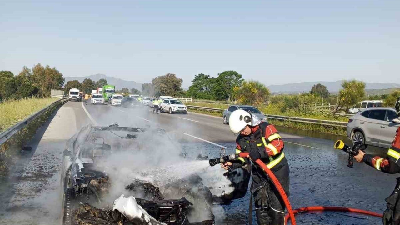 Yangın, Aydın İzmir otoyolu üzerinde meydana geldi. Edinilen bilgiye göre, Germencik Gişeleri mevkiinde otoyol üzerinde ilerleyen 09 SS 746 plakalı otomobilden bir anda alevler yükselmeye başladı. Araç sürücüsü aracını yol kenarına çekerek Acil Çağrı Merkezi'nden yardım istedi. Olay yerine gelen Aydın Büyükşehir Belediyesi itfaiye ekipleri sevk edildi. Olay yerine gelen ekipler otomobildeki yangına müdahale etti. İtfaiye ekipleri otomobildeki yangını söndürürken, araç kullanılmaz hale geldi.
