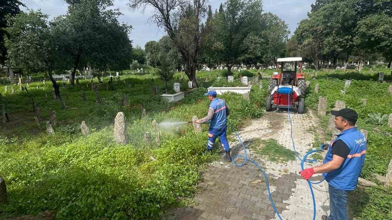 Aydın’ın Yenipazar ilçesinde çalışmalarına hız kesmeden devam eden belediye ekipleri, Hamzabali mahalle mezarlığını bakıma aldı.