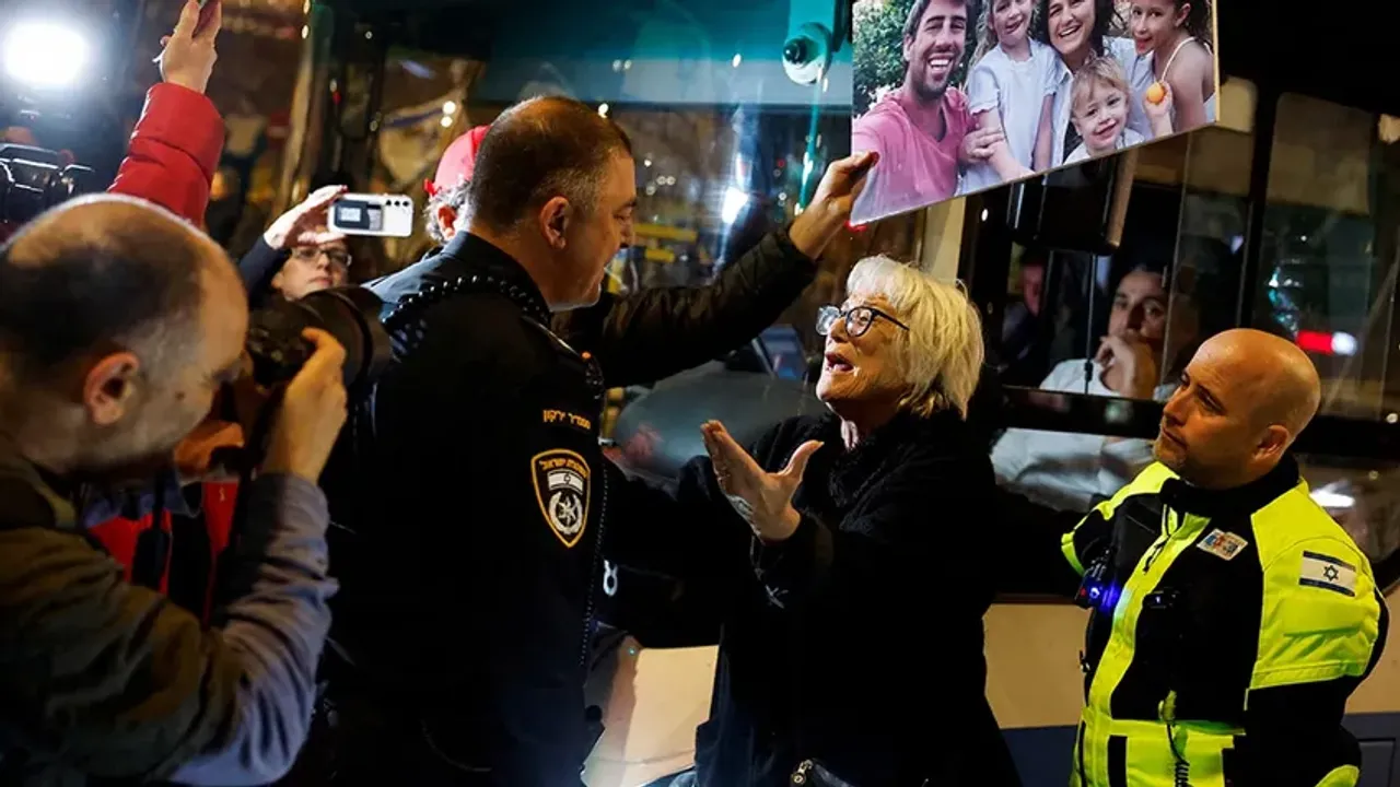 Tel Aviv'deki Savunma Bakanlığı önünde binlerce gösterici toplandı. Alanda kurulan sahnede eski siyasetçiler ve esir yakınları konuşma yaptı.