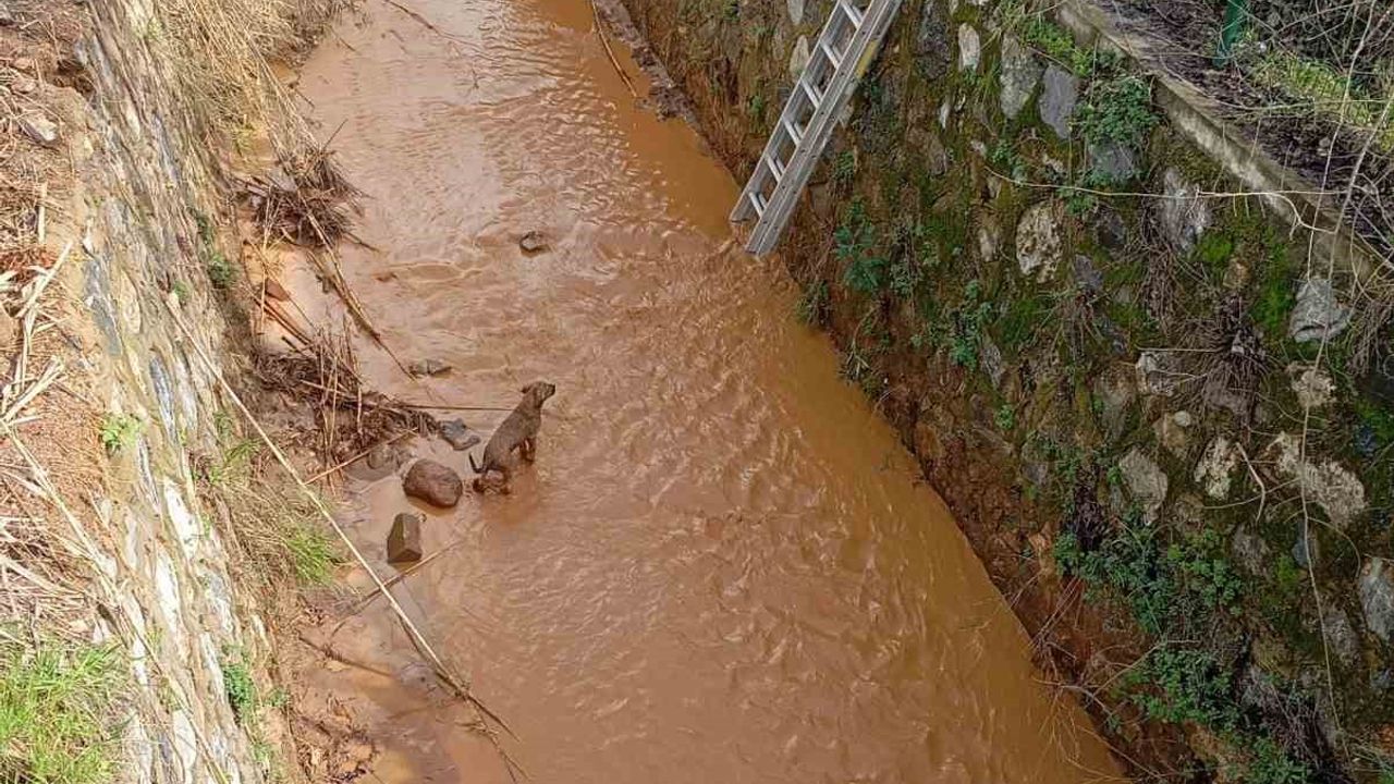 Aydın'ın Efeler ilçesinde sulama kanalına düşen köpeği Aydın Büyükşehir Belediyesi İtfaiye Daire Başkanlığı ekipleri kurtardı.