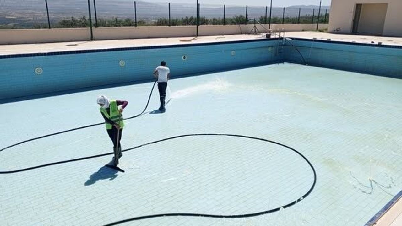 Aydın’ın Karacasu ilçesinde bulunan yüzme havuzunda sezona hazırlık kapsamında temizlik ve bakım çalışması yapıldı.