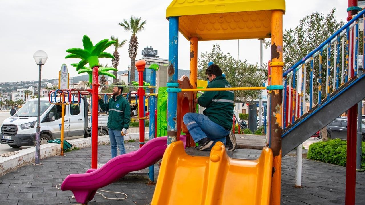 Kuşadası Belediyesi, kent genelinde sürdürdüğü alt ve üstyapı çalışmalarına paralel olarak çocuk parklarında da bakım ve yenileme çalışmalarına hız verdi. Park ve Bahçeler Müdürlüğü ekipleri, özellikle sahil bandında yer alan parklardaki çocuk oyun gruplarının bakımına başladı.