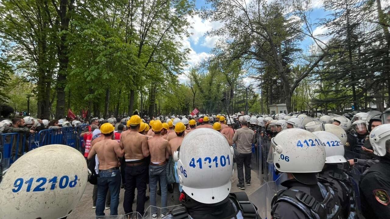 İlk barikatın aşılmasından sonra işçilere biber gazlı müdahale edildi. İşçiler 2. barikatın önünde oturma eylemine başladı.