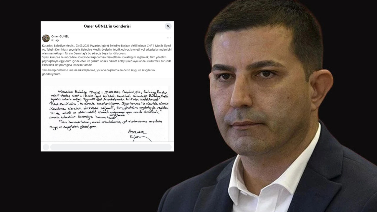 “23.03.2026 Pazartesi günü Kuşadası Belediye Meclisi, Belediye Başkan vekili olarak CHP’li Meclis Üyesi Av. Tahsin Demirtaş’ı seçmiştir. Belediye Meclis üyelerini tebrik ediyor, kıymetli yol arkadaşlarımdan biri olan meslektaşım Tahsin Demirtaş’a bu süreçte başarılar diliyorum.