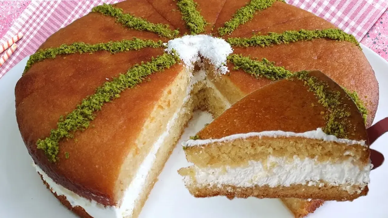 Kızaran kek biraz soğuduktan sonra ortadan ikiye ayırın.