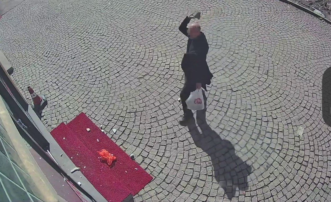 Erzurum'da bir eczaneye yönelik kundaklama girişimi anbean kameralara yansıdı. Önce parke taşı ile eczanenin camını kıran şüpheli, daha sonra ay çiçeği yağı ile kundaklama girişiminde bulundu.