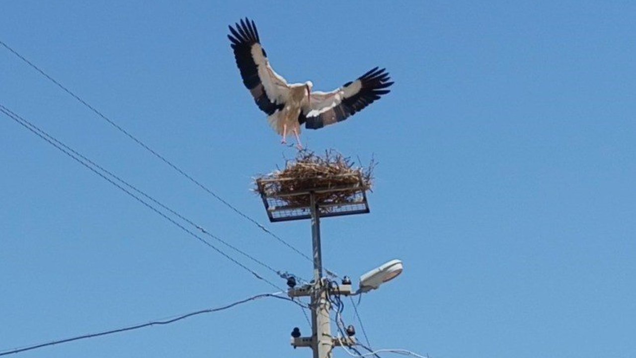 Aydın'ın Söke ilçesi Sazlı Mahallesi'ne gelen leyleklere ekipler tarafından yeni yuva yapıldı.