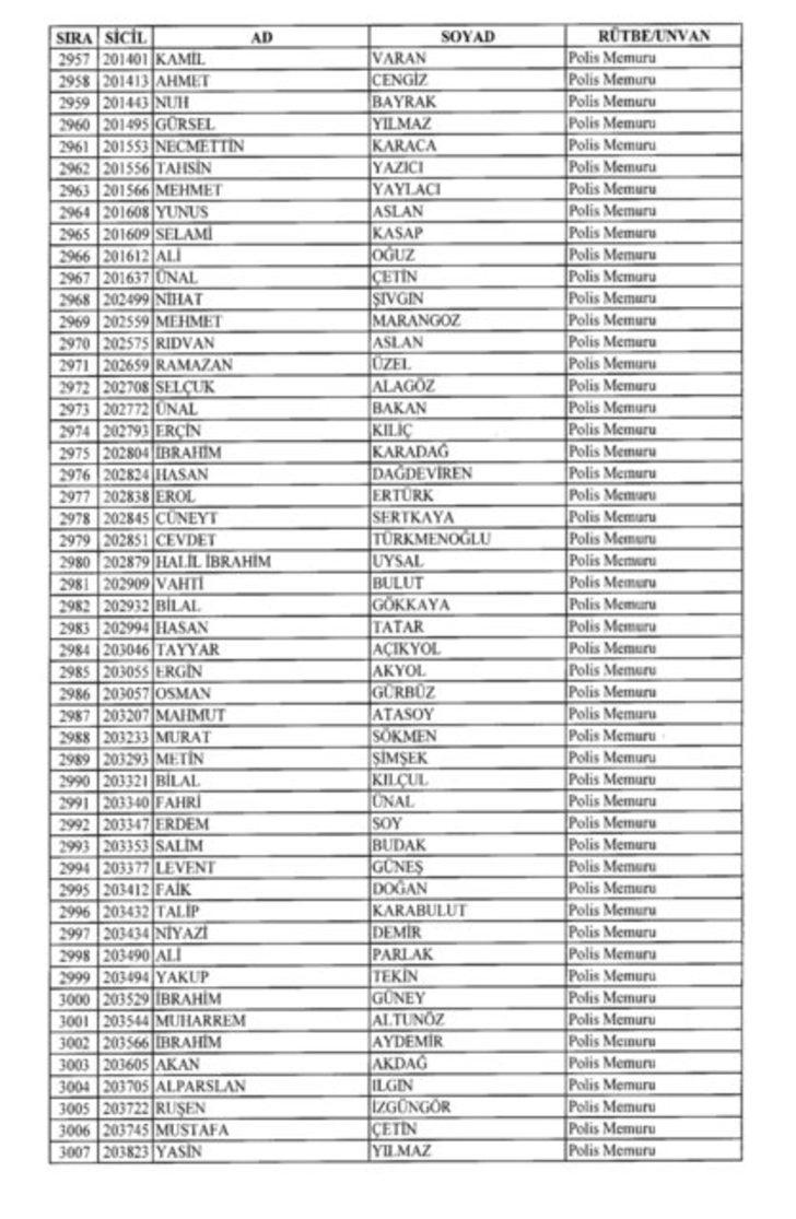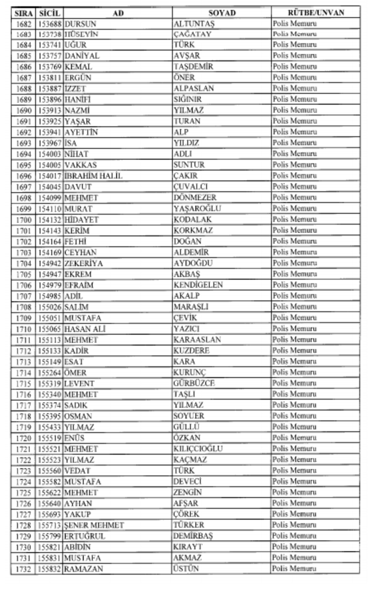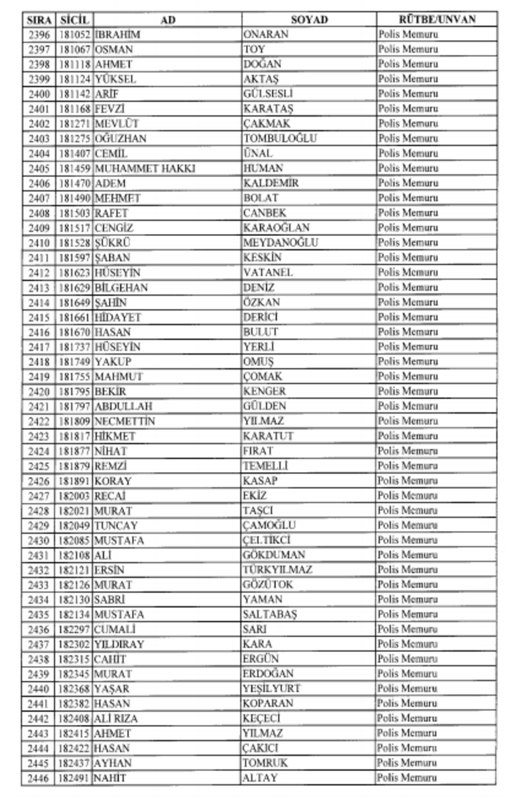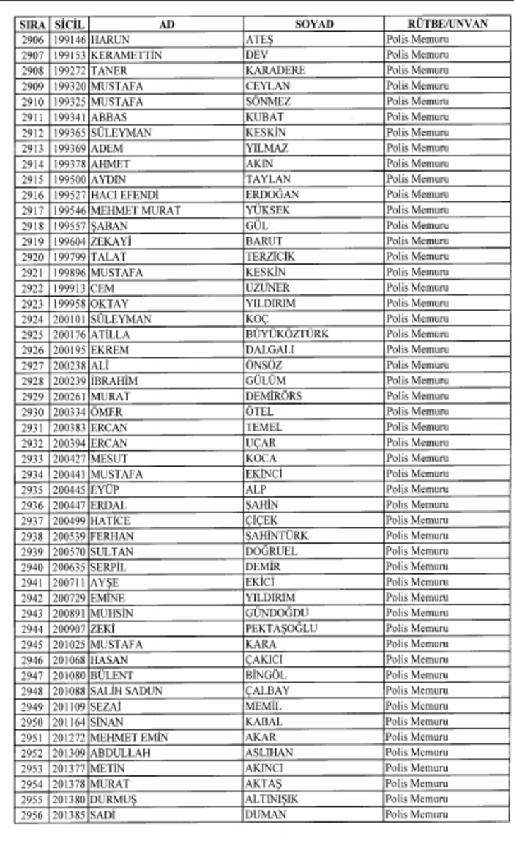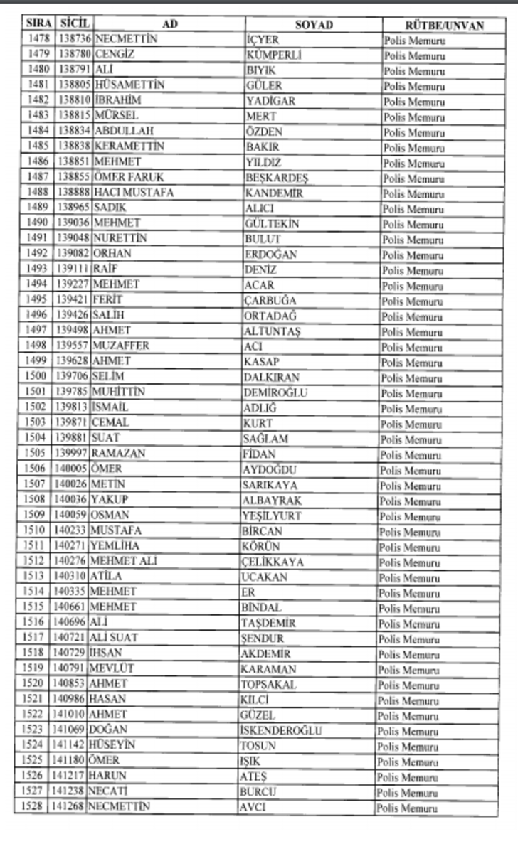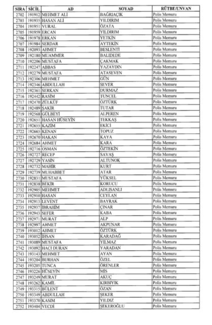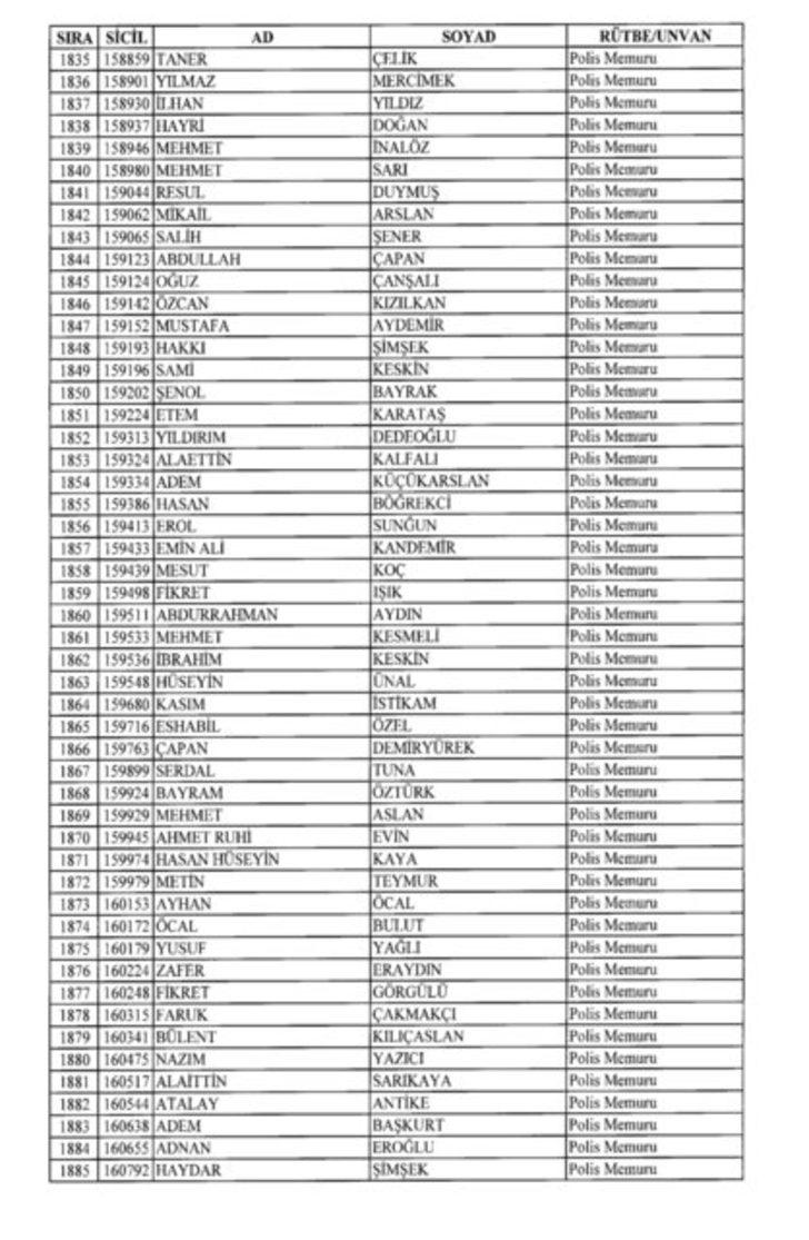 2018 SON KHK EMNİYET'TEN İHRAÇ EDİLEN POLİS VE PERSONEL İSİM LİSTESİ