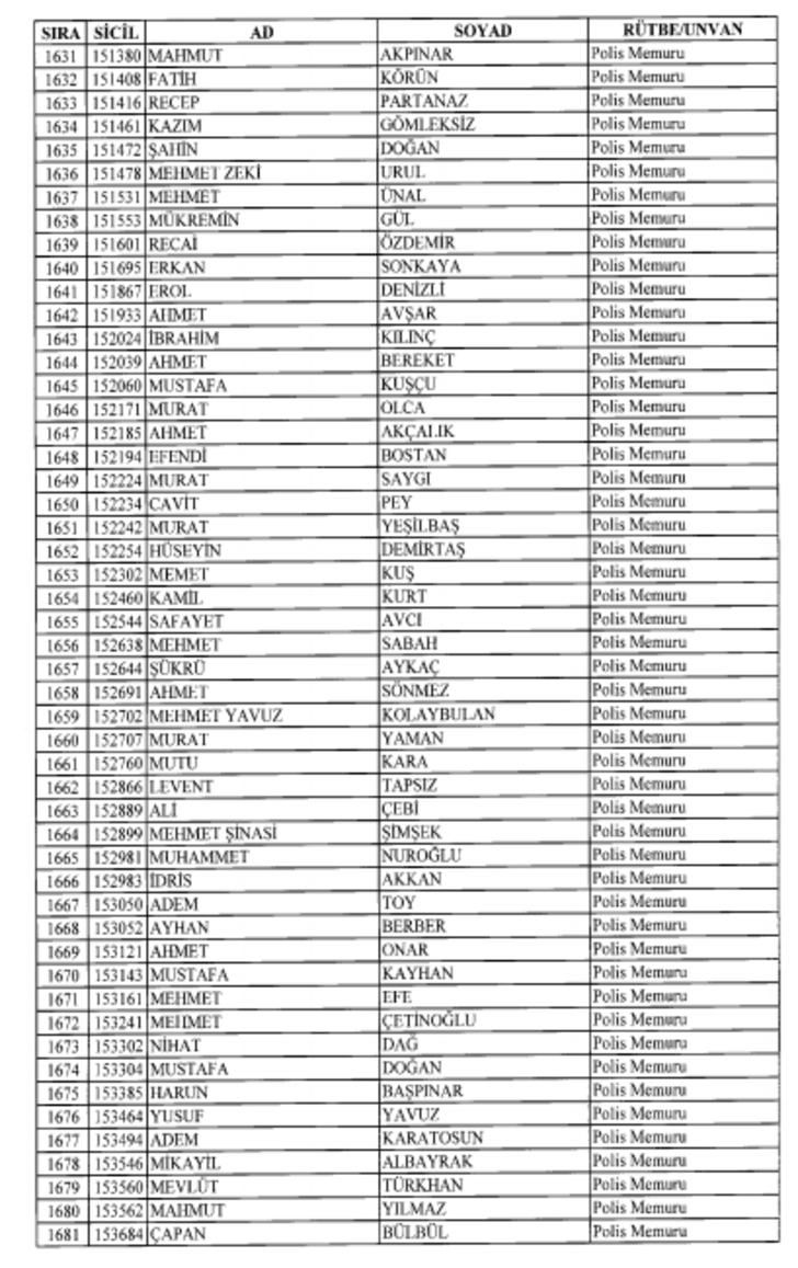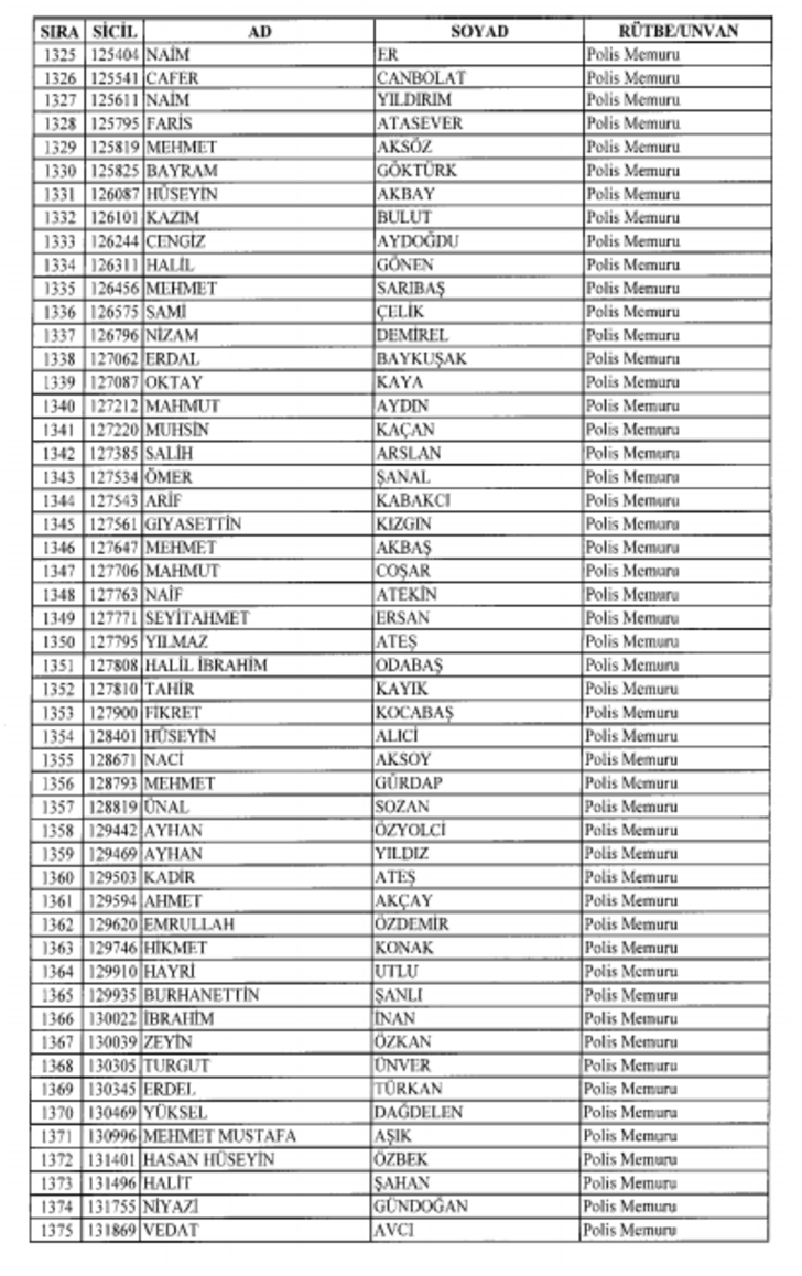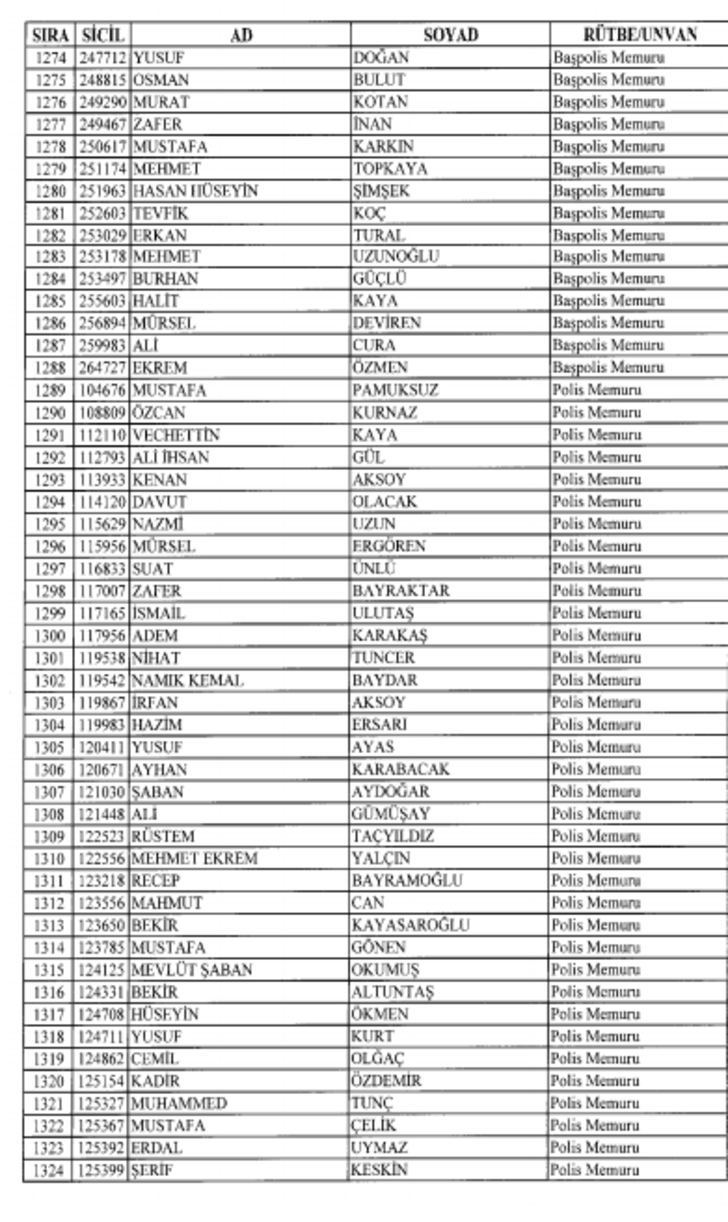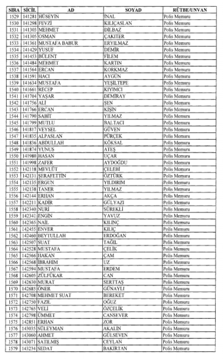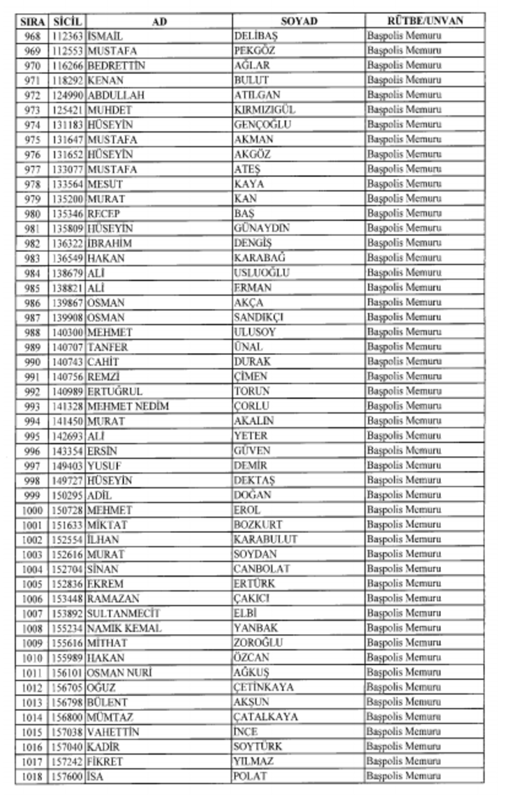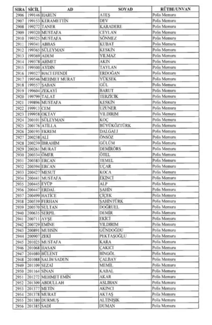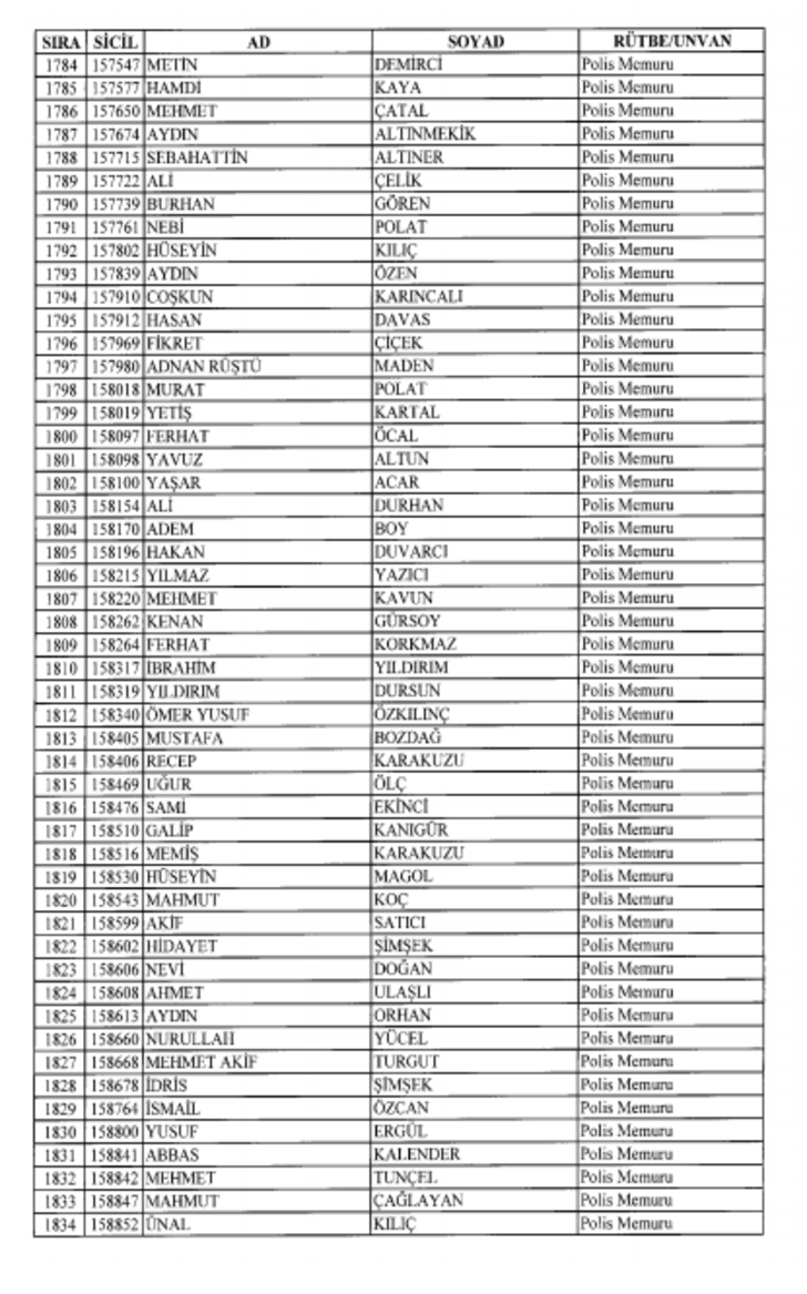 2018 SON KHK EMNİYET'TEN İHRAÇ EDİLEN POLİS VE PERSONEL İSİM LİSTESİ