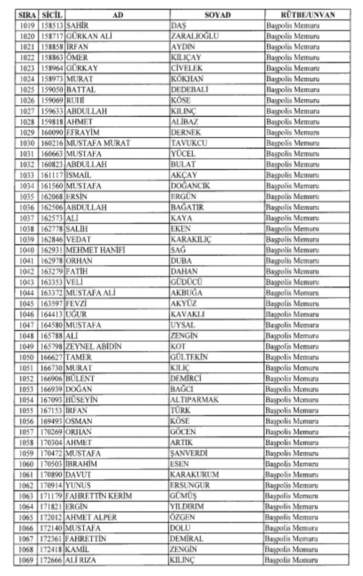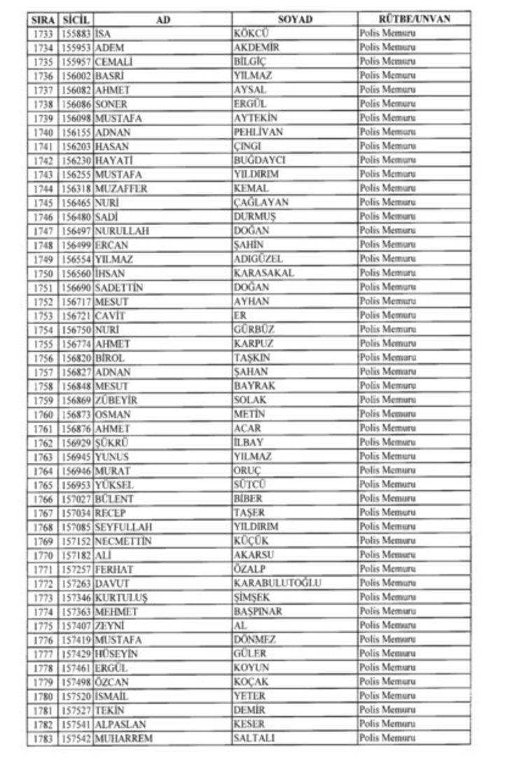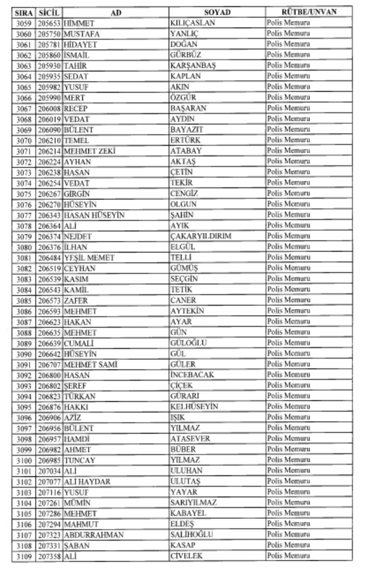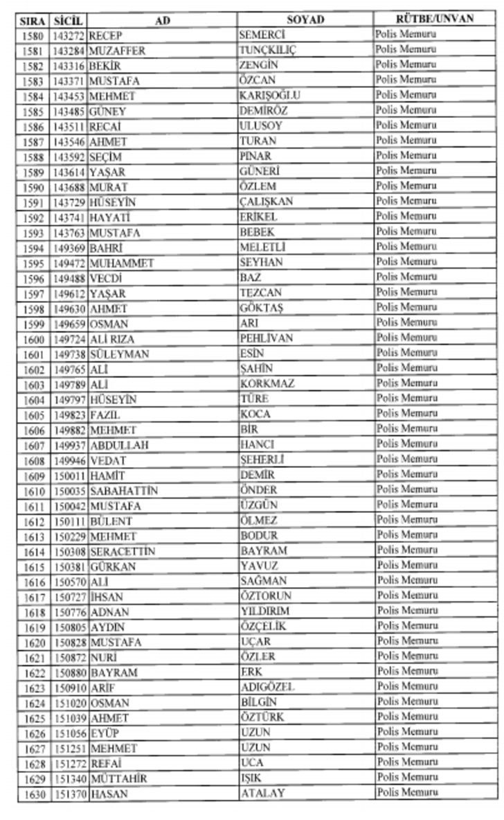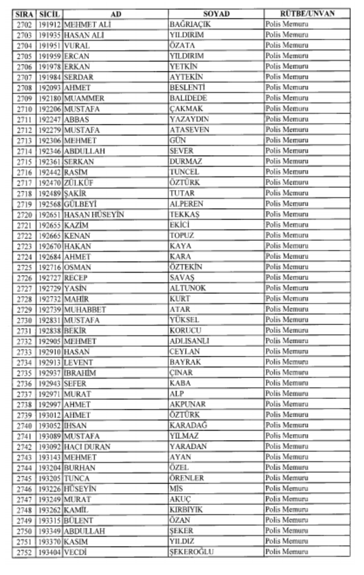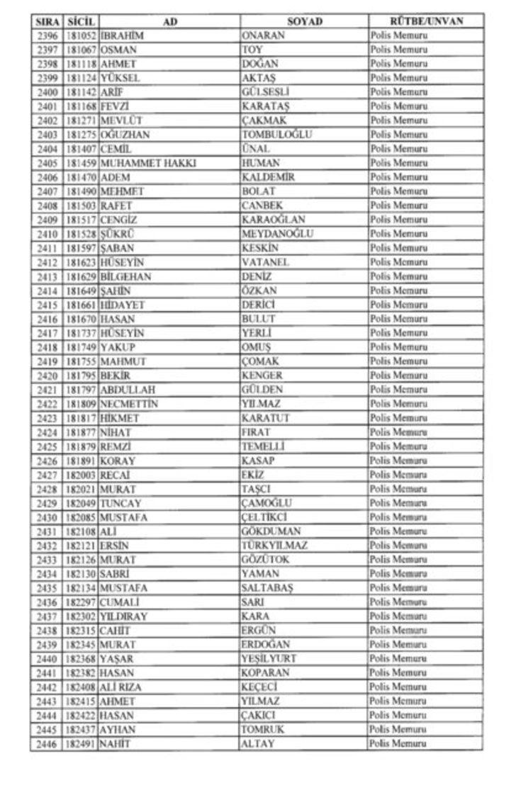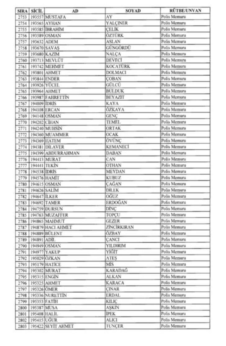 2018 SON KHK EMNİYET'TEN İHRAÇ EDİLEN POLİS VE PERSONEL İSİM LİSTESİ