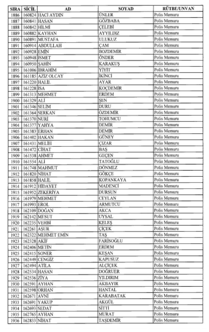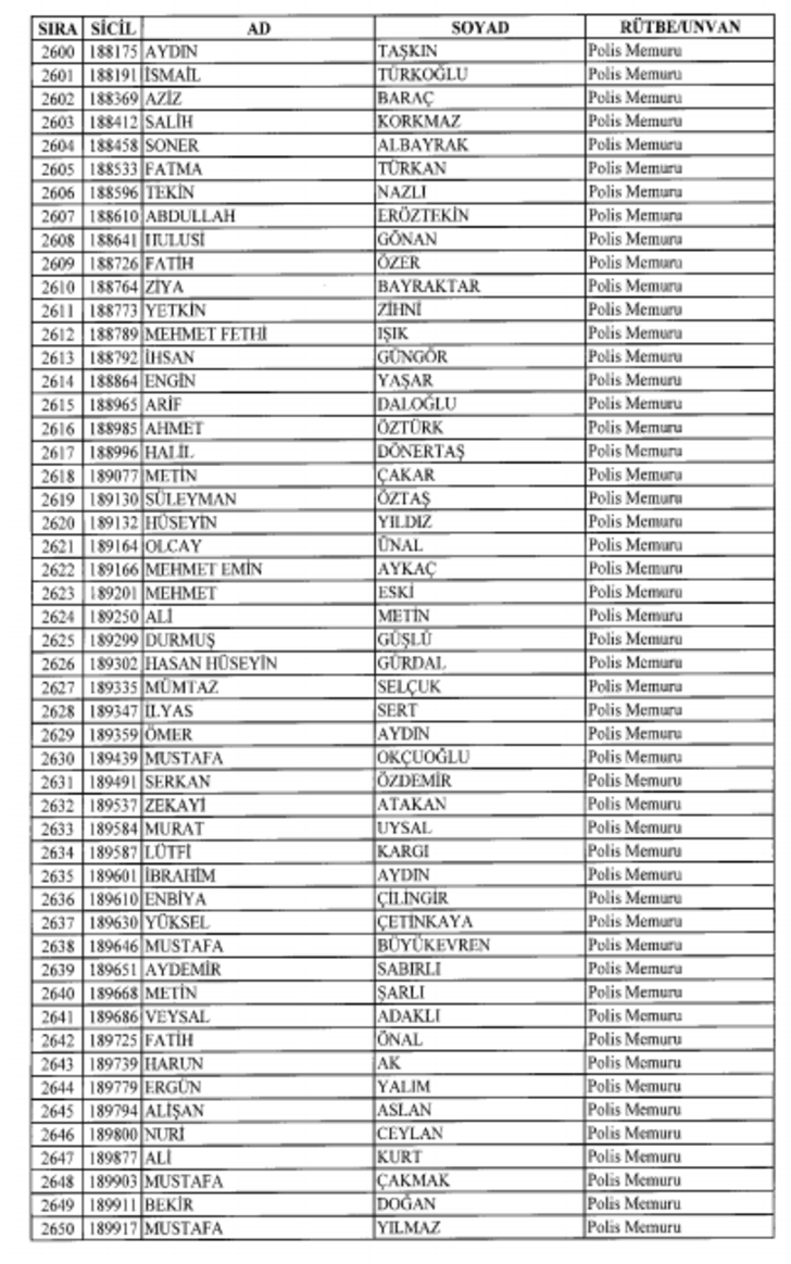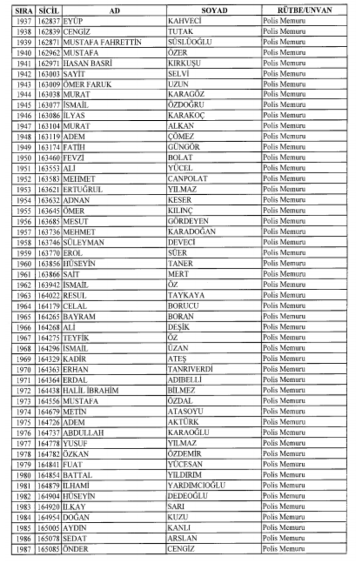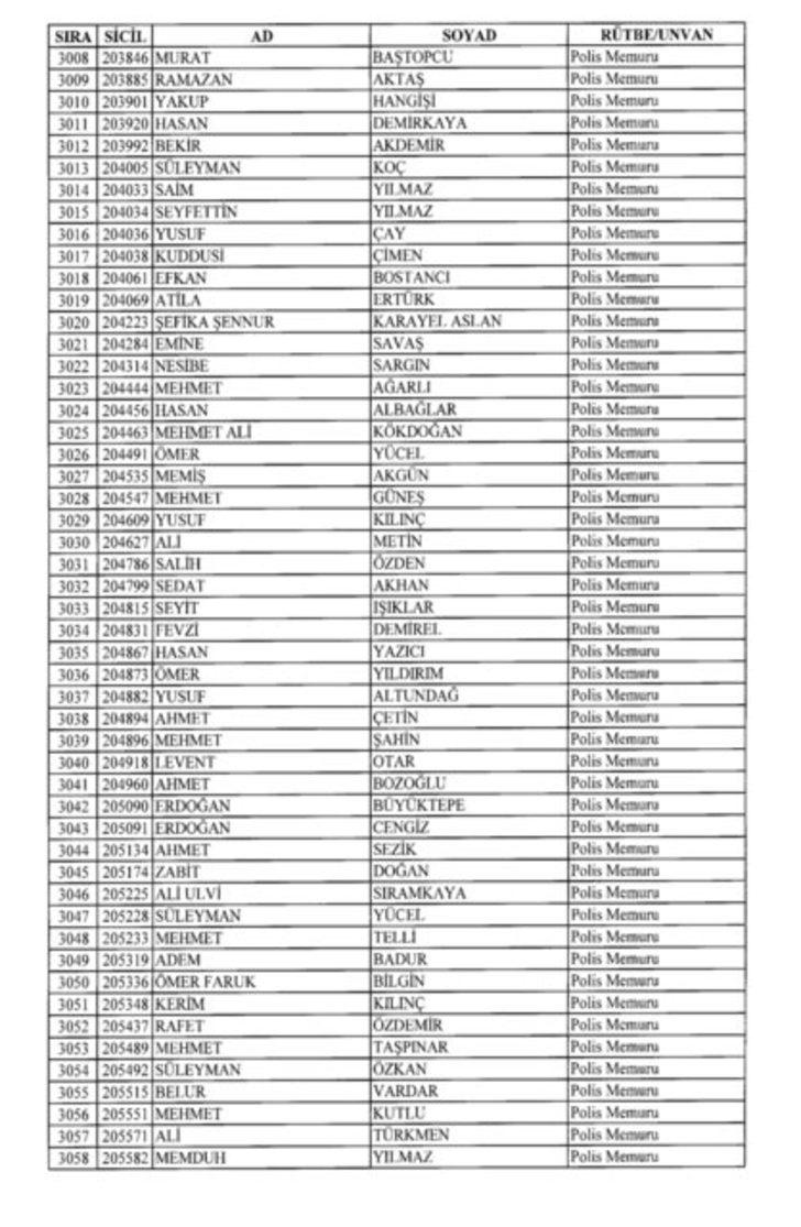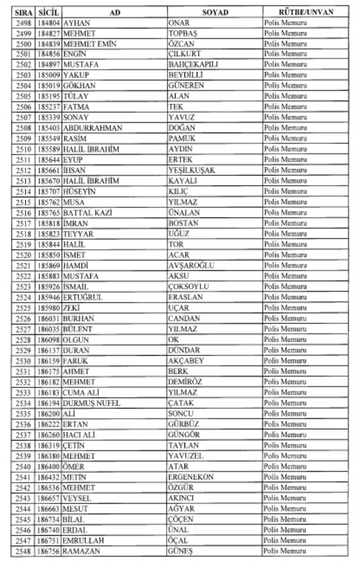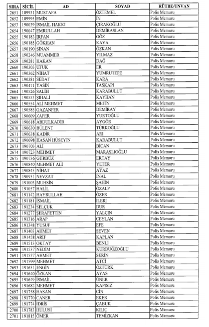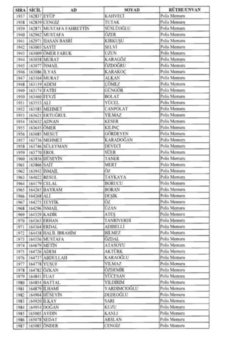2018 SON KHK EMNİYET'TEN İHRAÇ EDİLEN POLİS VE PERSONEL İSİM LİSTESİ