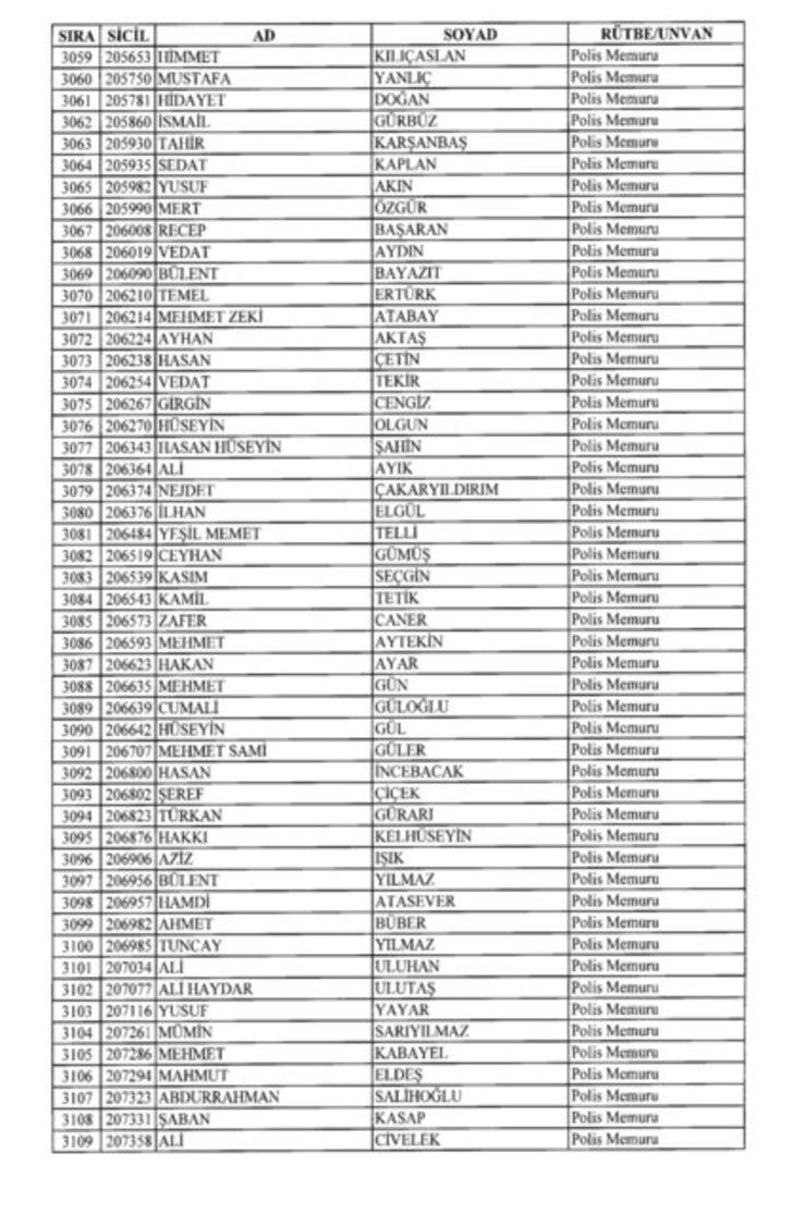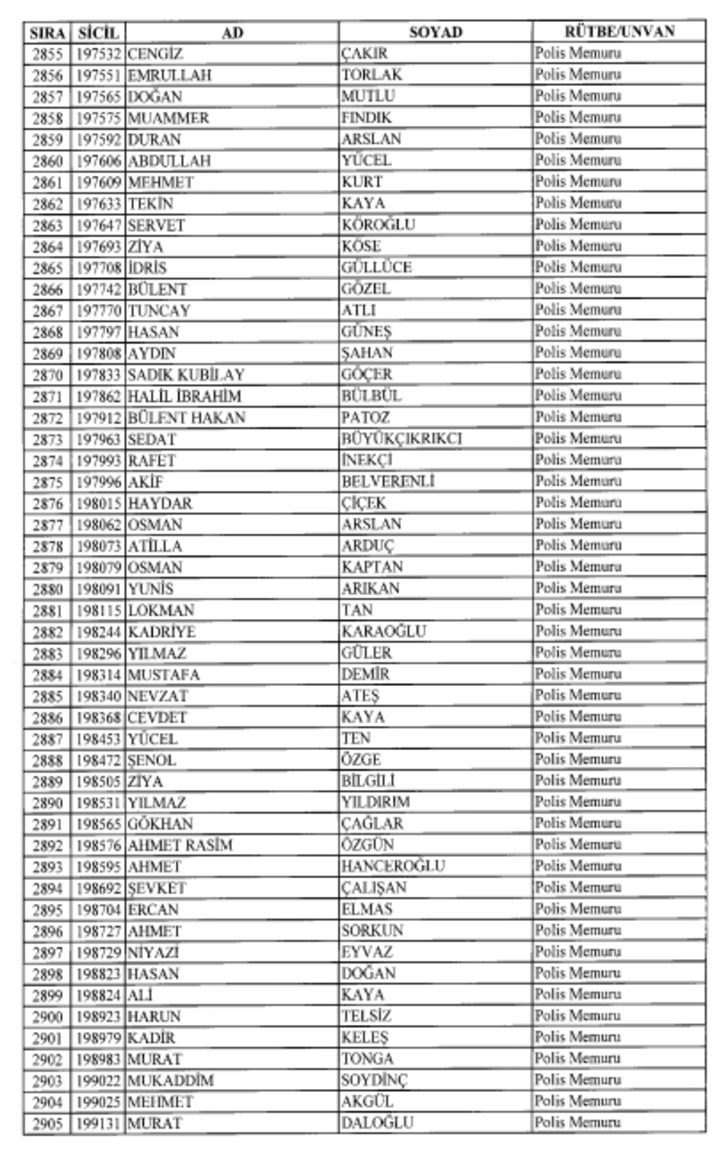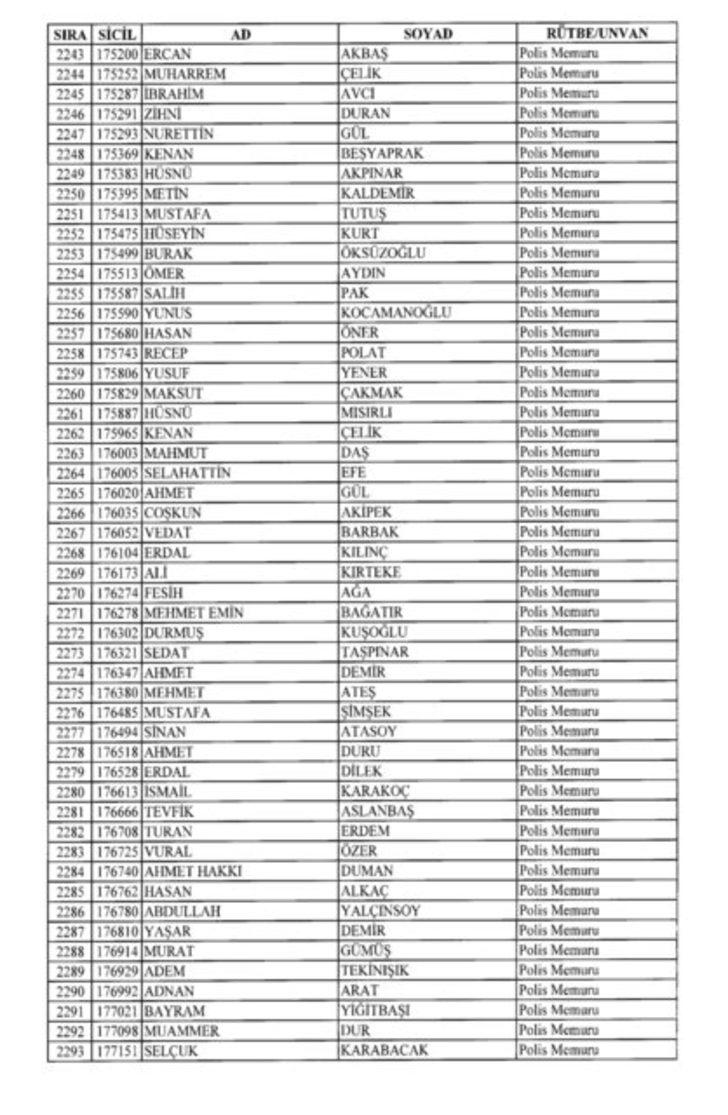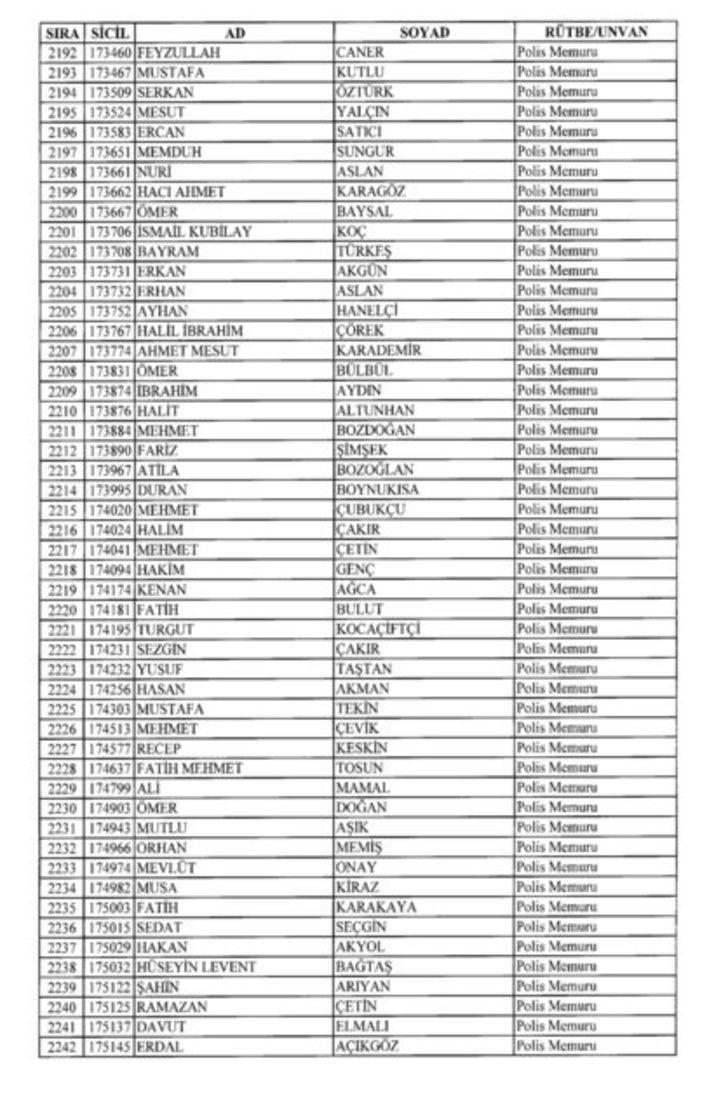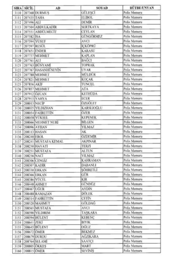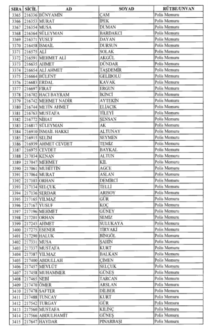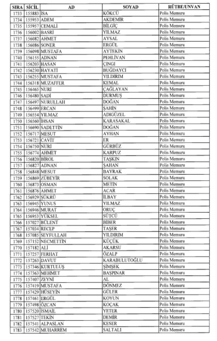2018 SON KHK EMNİYET'TEN İHRAÇ EDİLEN POLİS VE PERSONEL İSİM LİSTESİ