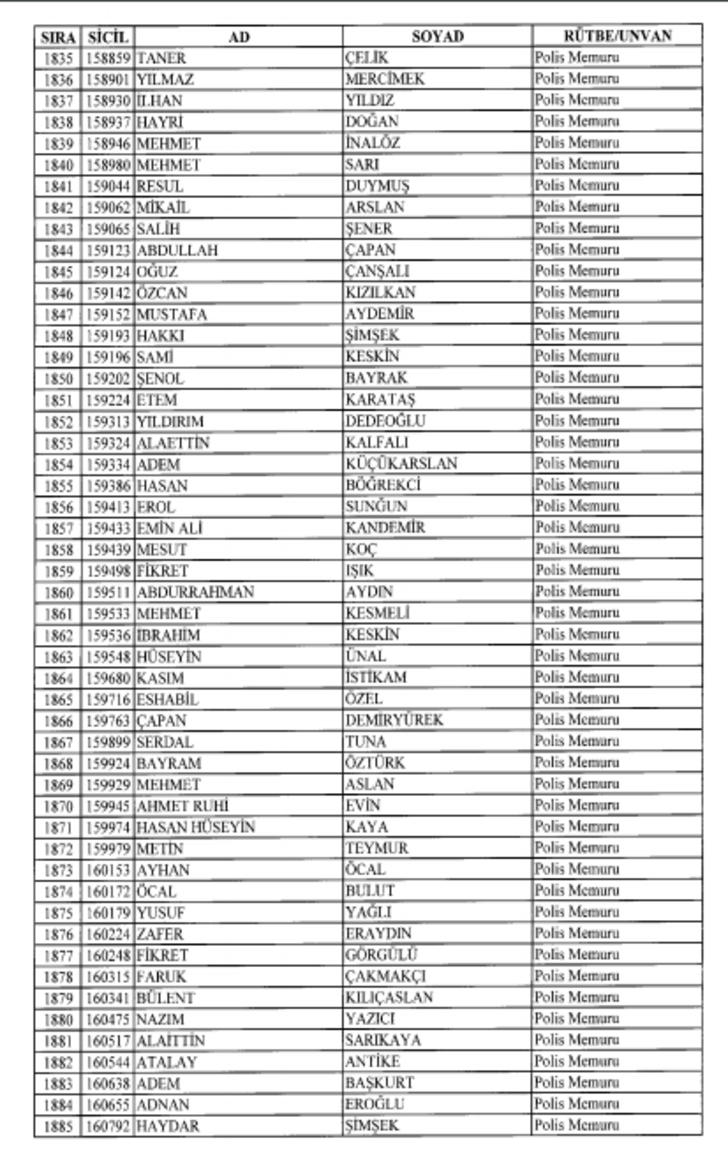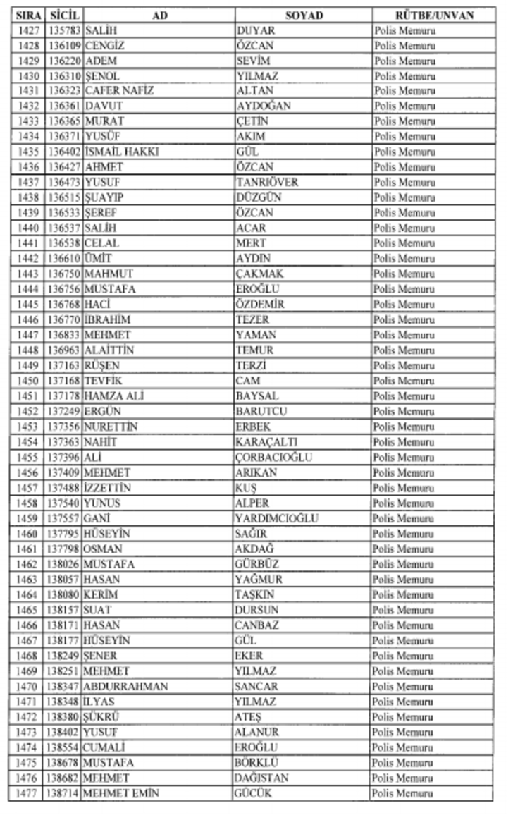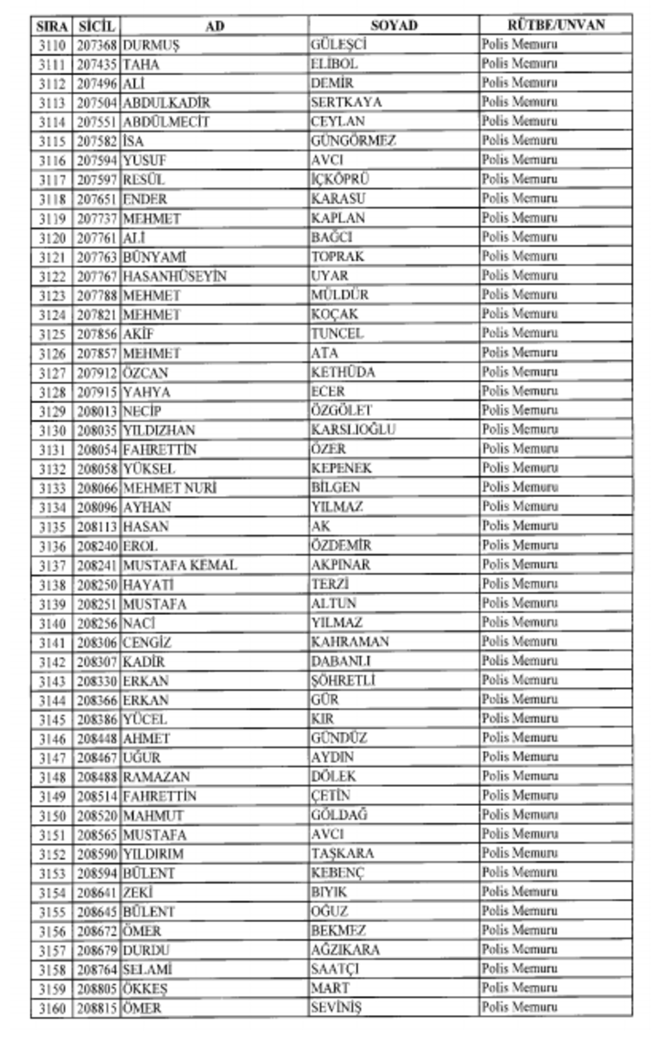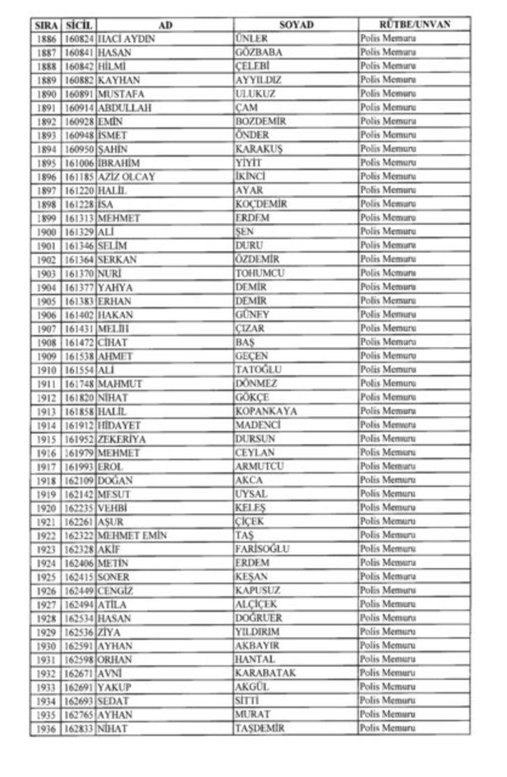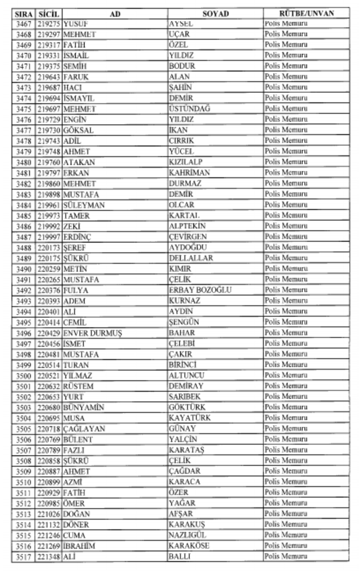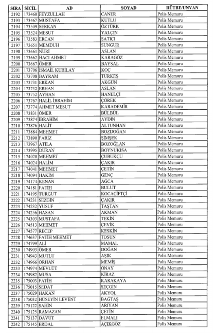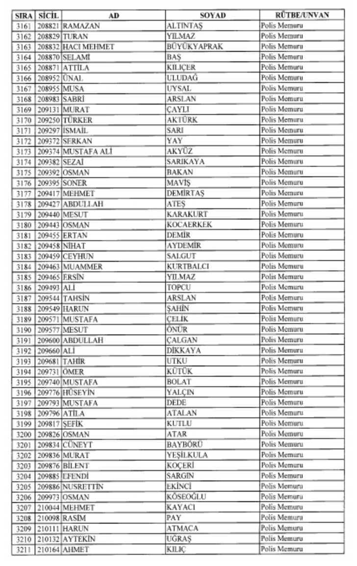 2018 SON KHK EMNİYET'TEN İHRAÇ EDİLEN POLİS VE PERSONEL İSİM LİSTESİ