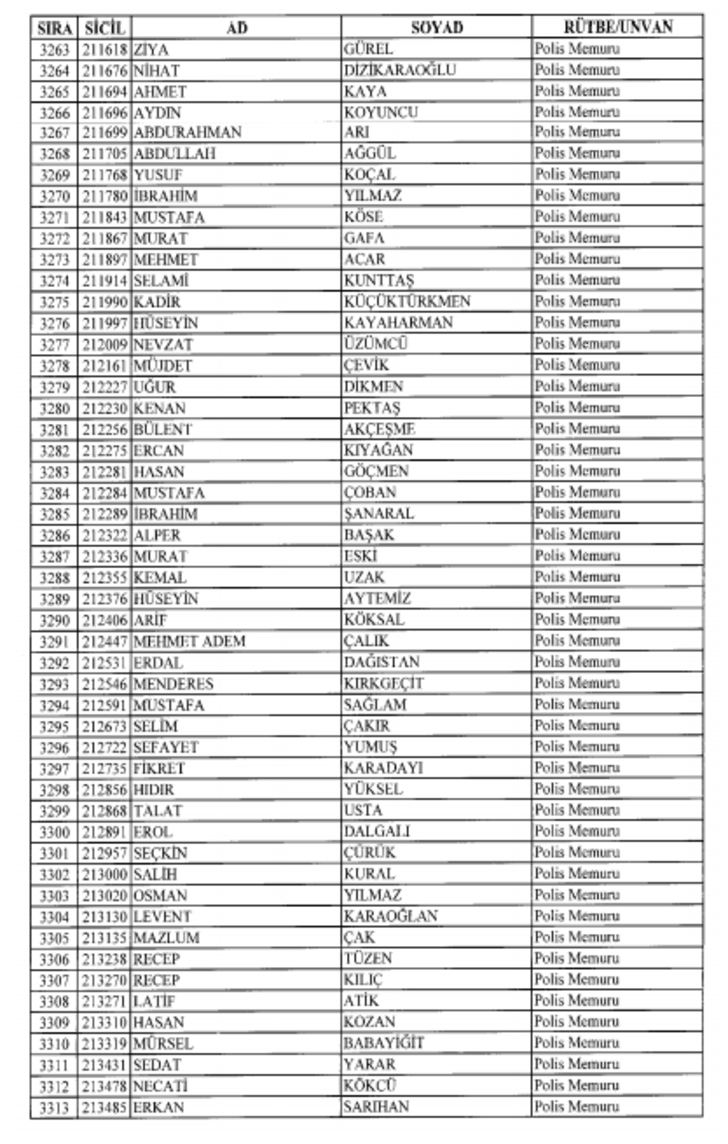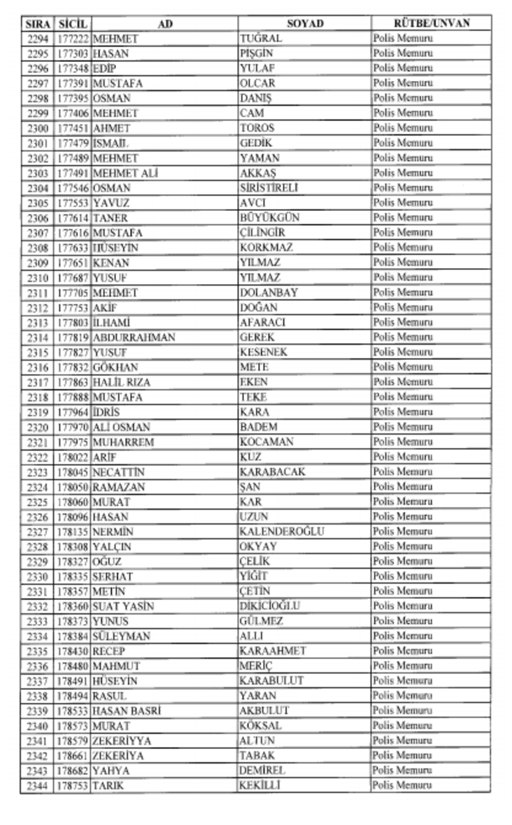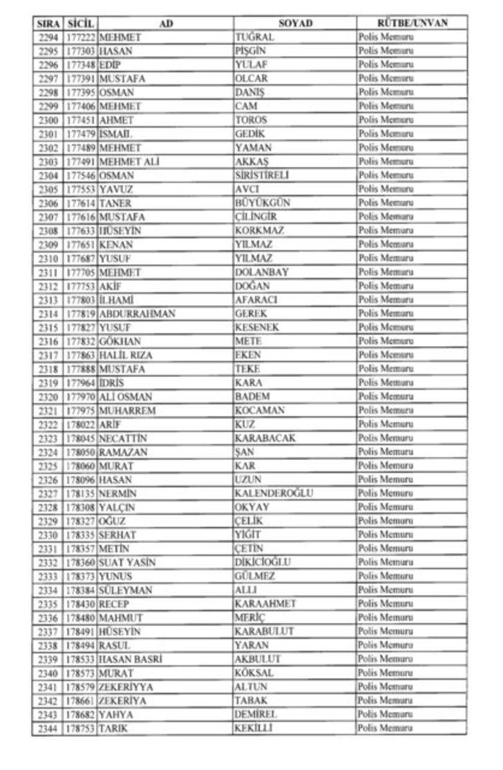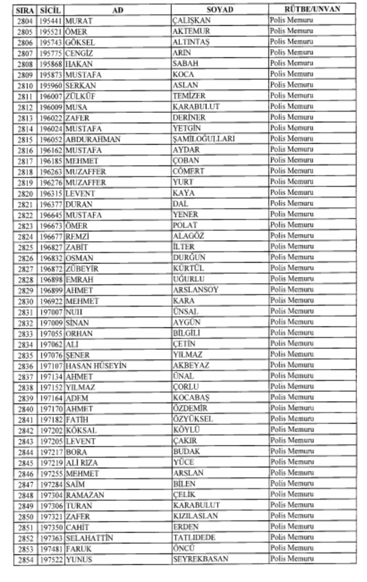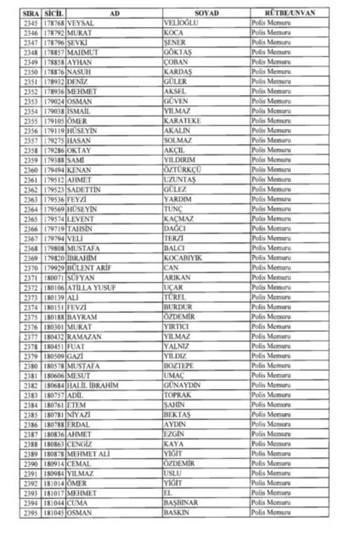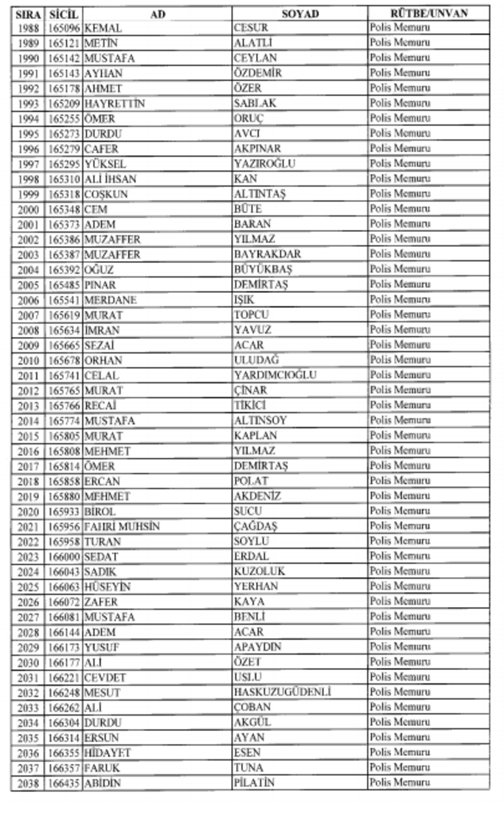 2018 SON KHK EMNİYET'TEN İHRAÇ EDİLEN POLİS VE PERSONEL İSİM LİSTESİ