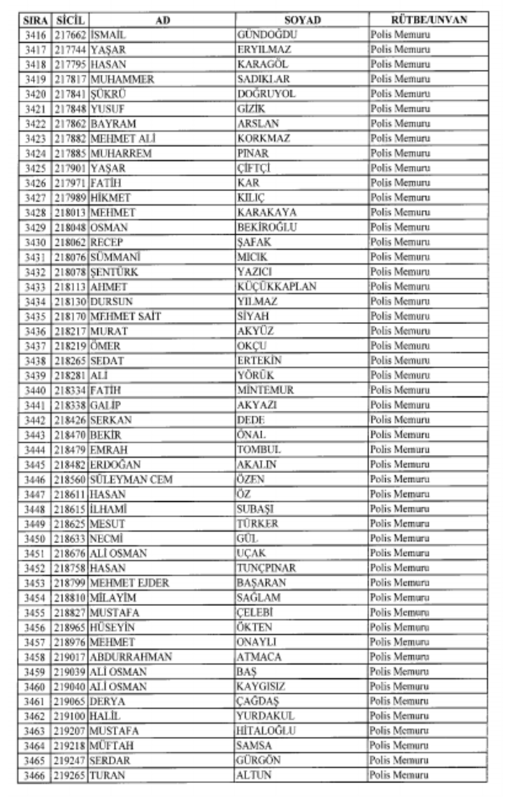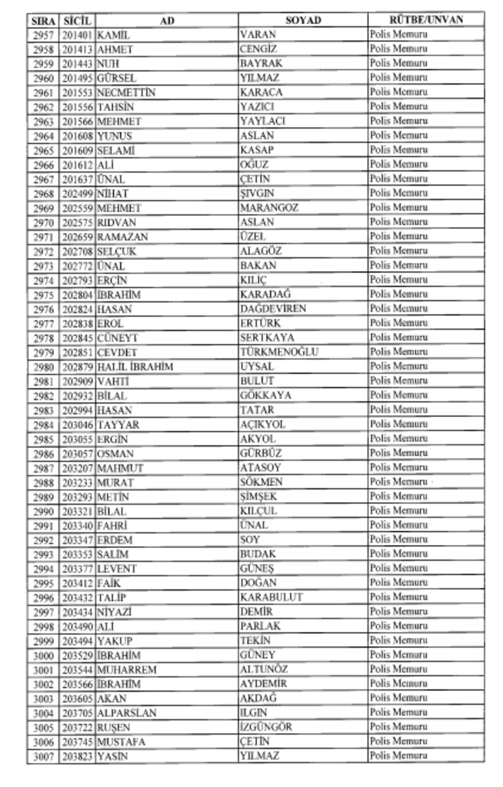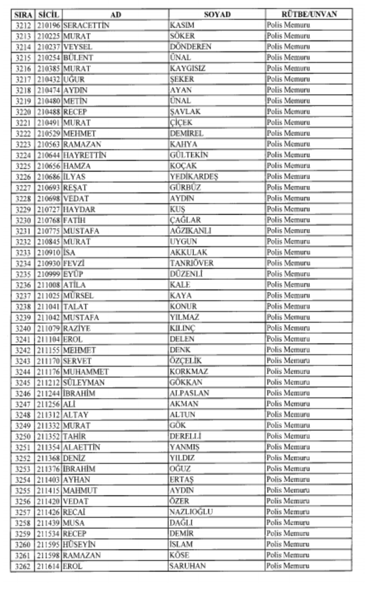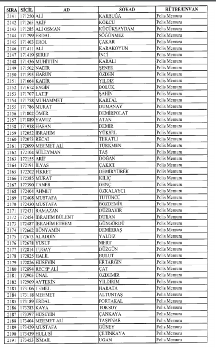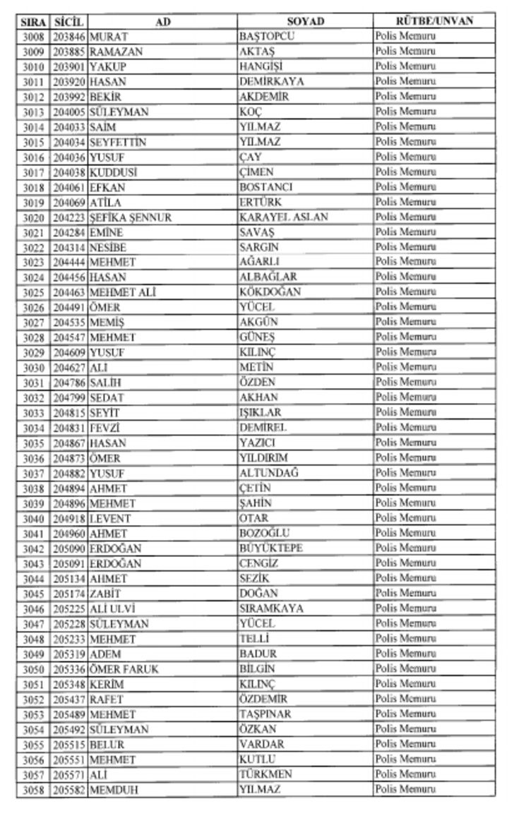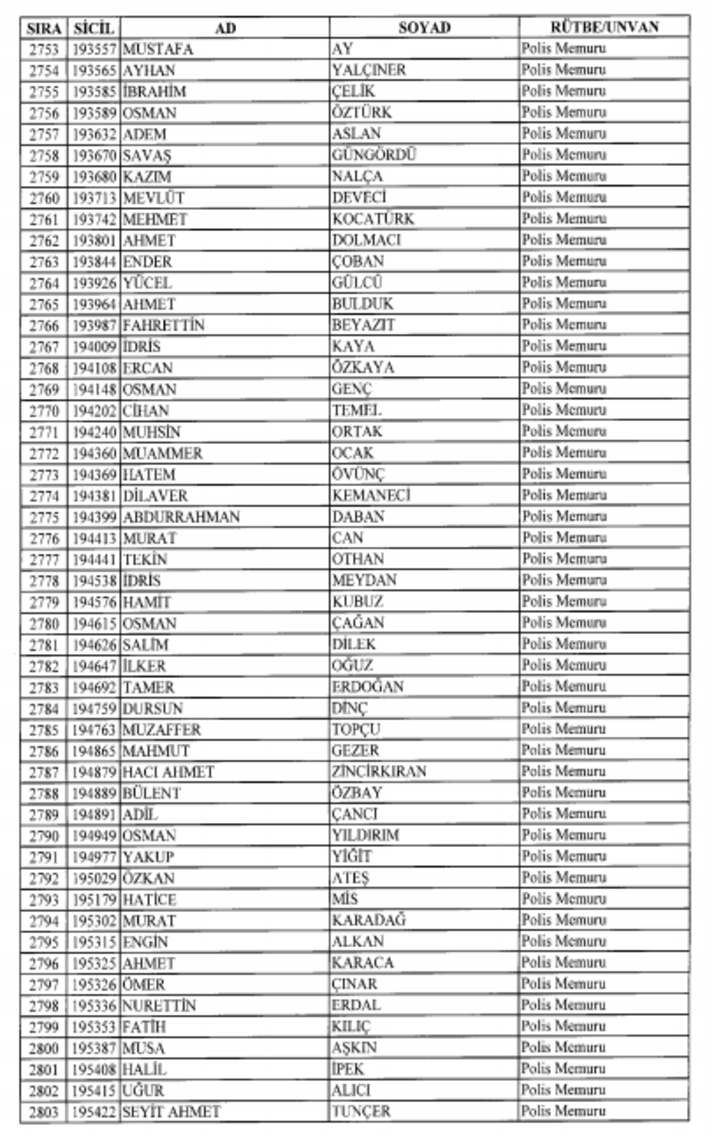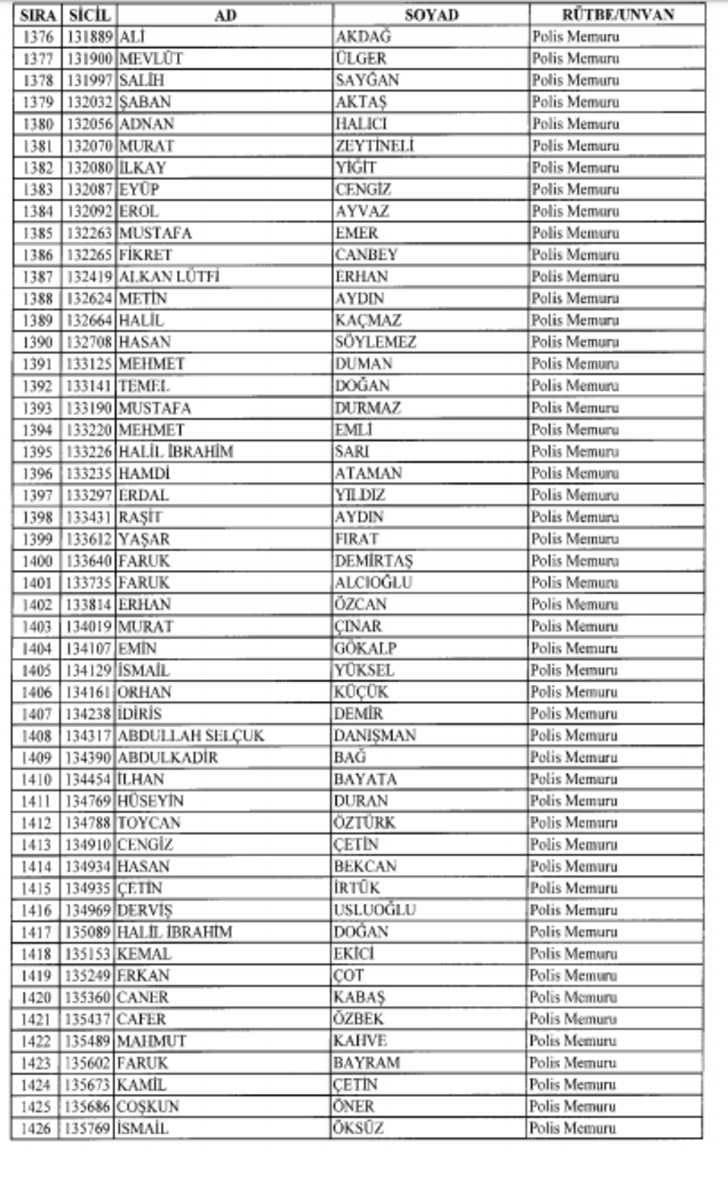 2018 SON KHK EMNİYET'TEN İHRAÇ EDİLEN POLİS VE PERSONEL İSİM LİSTESİ