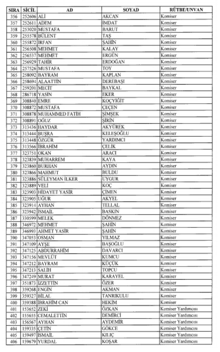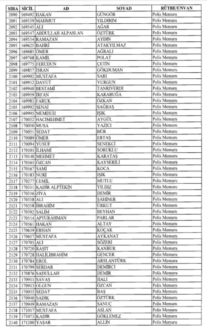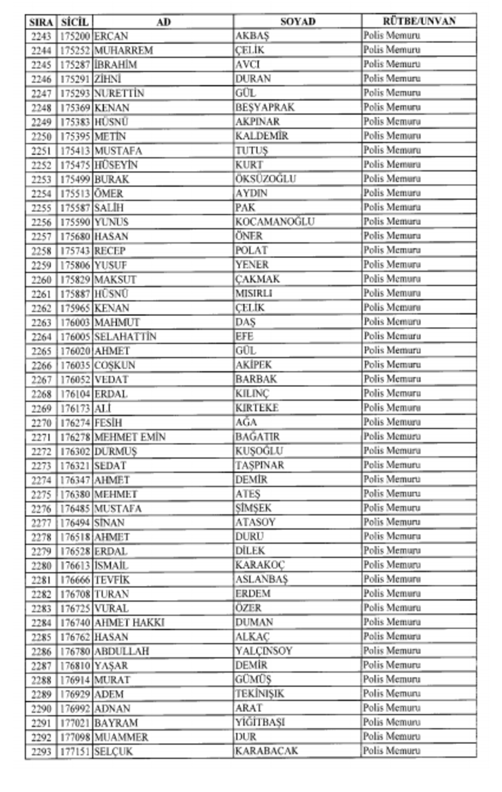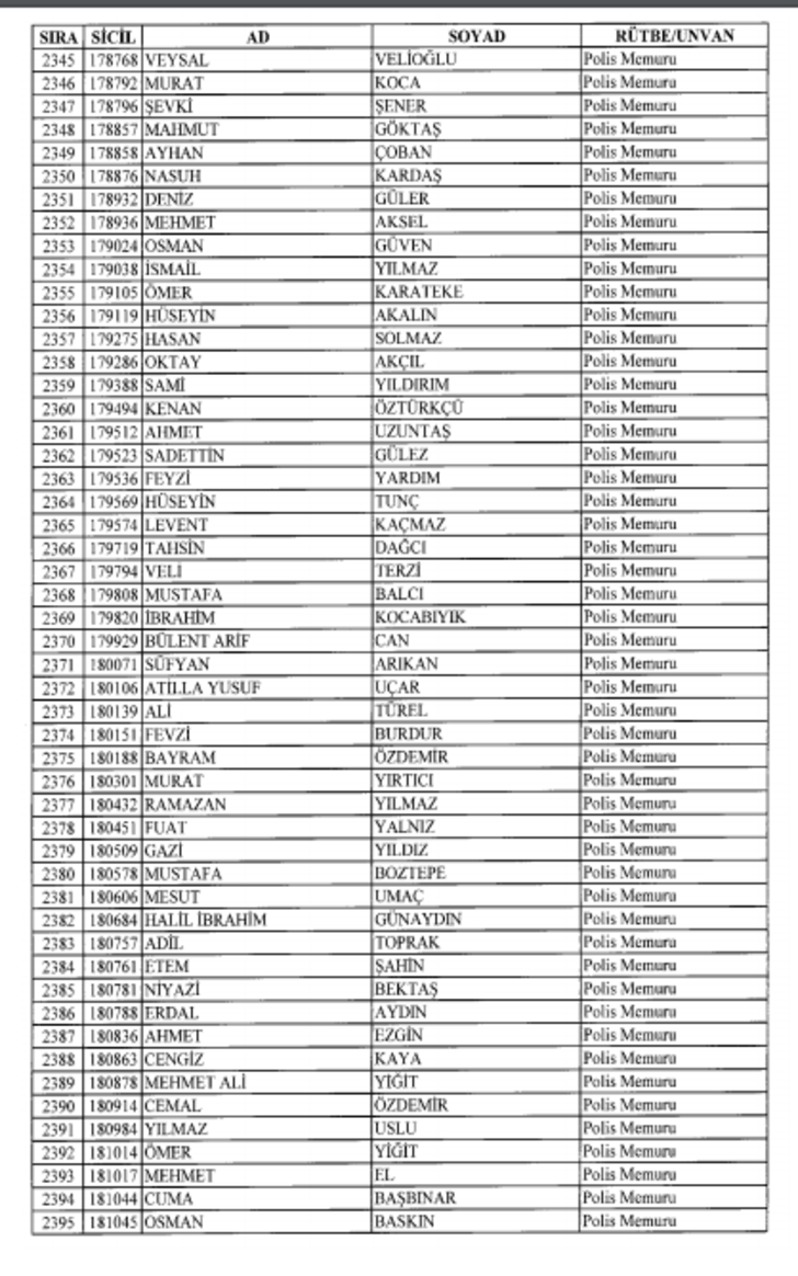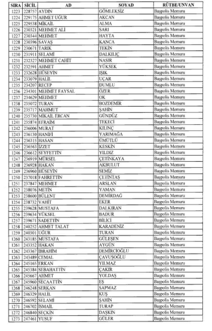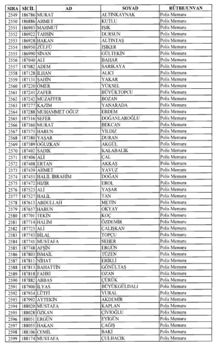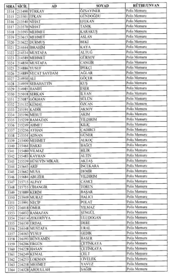 2018 SON KHK EMNİYET'TEN İHRAÇ EDİLEN POLİS VE PERSONEL İSİM LİSTESİ