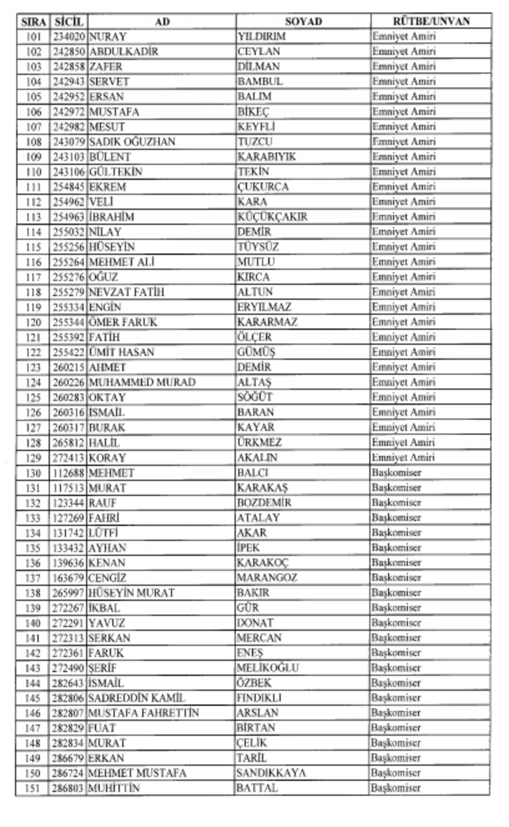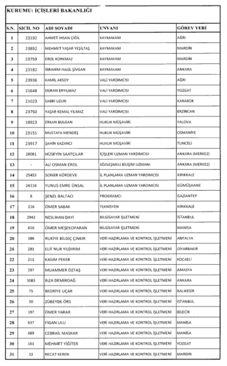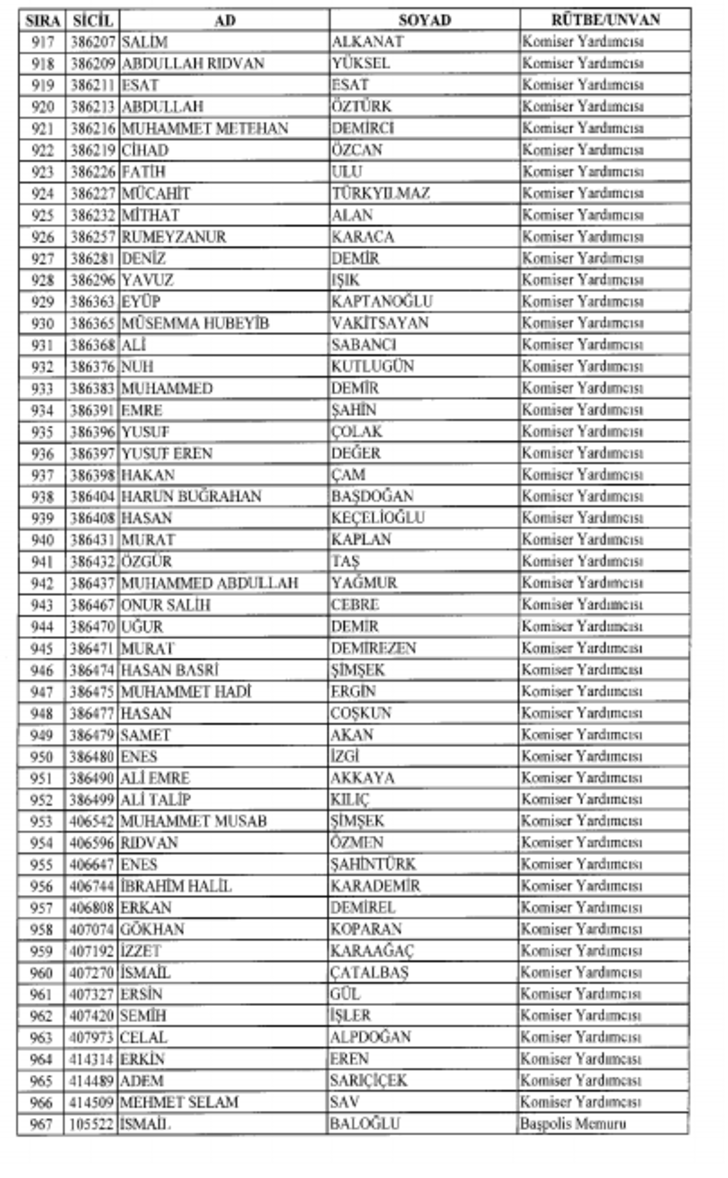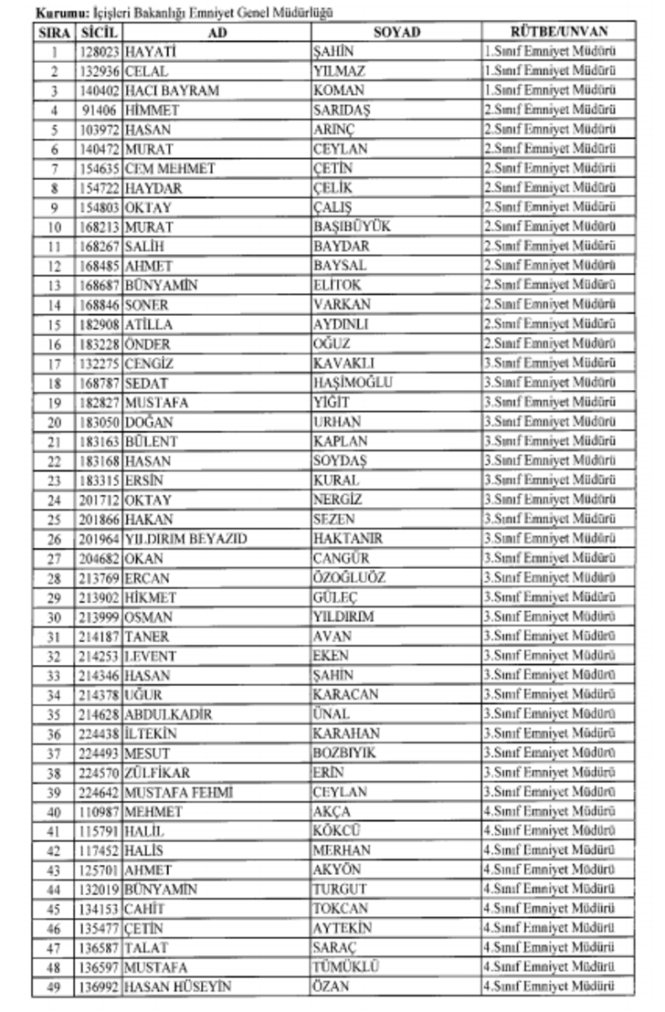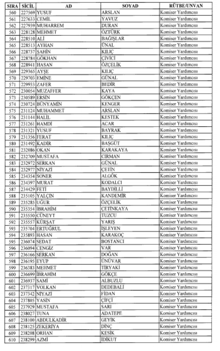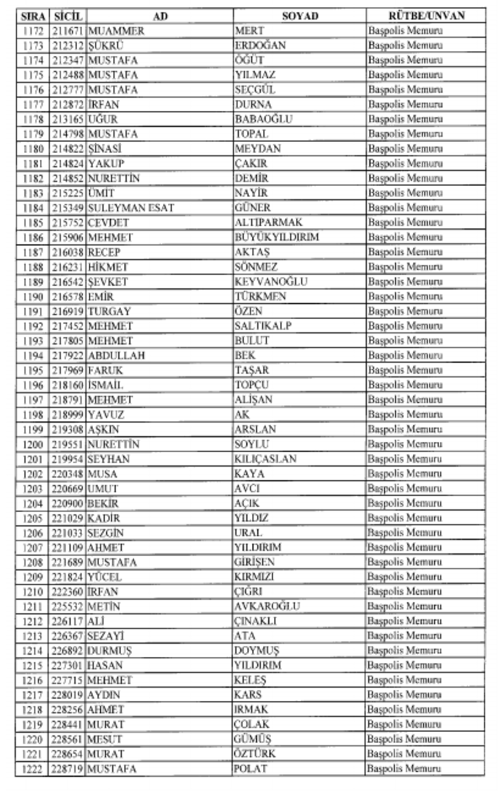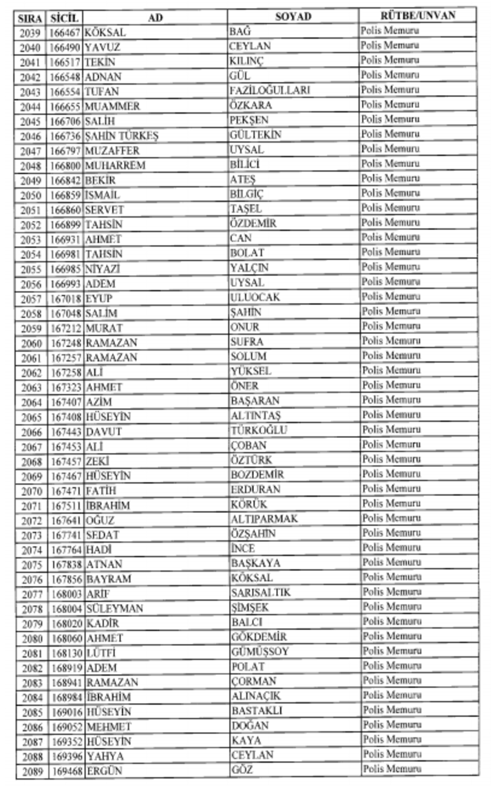 2018 SON KHK EMNİYET'TEN İHRAÇ EDİLEN POLİS VE PERSONEL İSİM LİSTESİ