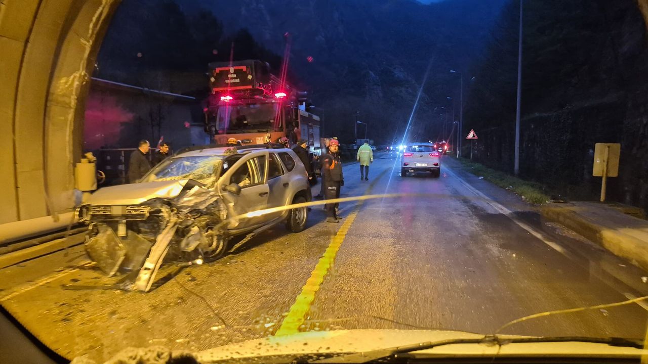 Karabük'te tünel içerisinde iki otomobilin çarpışması sonucu meydana gelen kazada 2'si çocuk 7 kişi yaralandı.