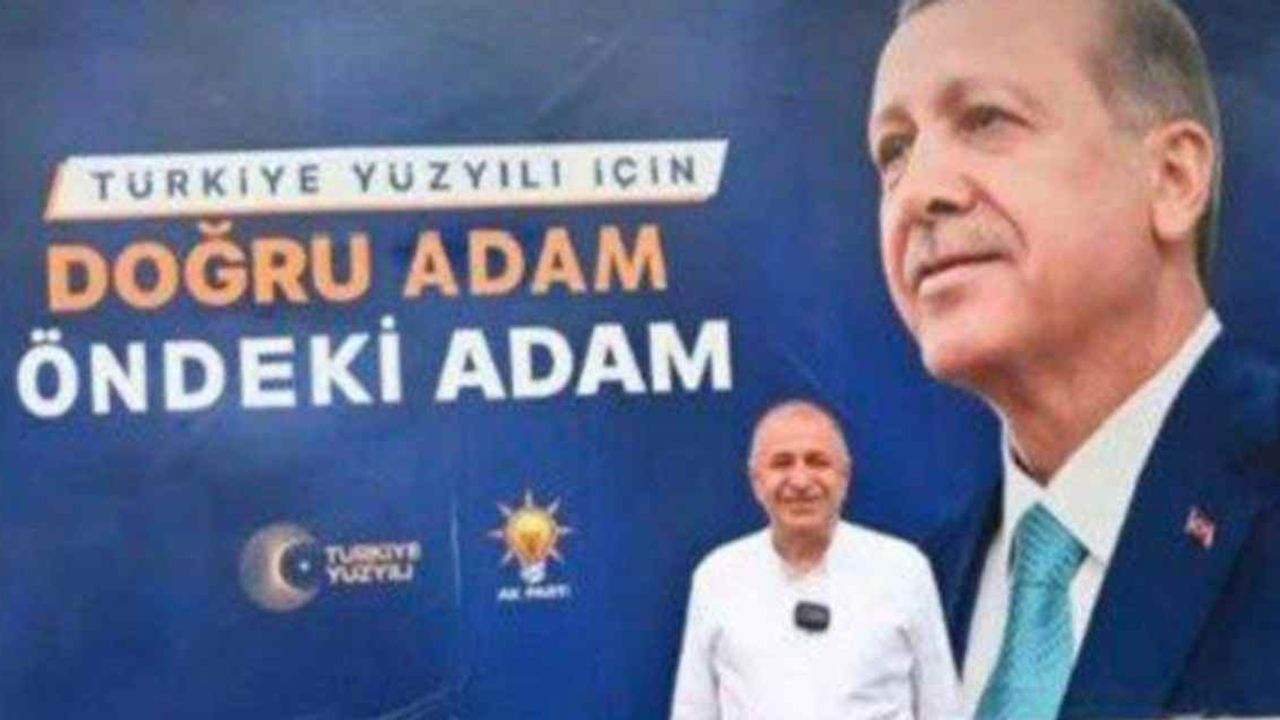 Zafer Partisi Genel Başkanı Ümit Özdağ, AKP'li Cumhurbaşkanı Erdoğan’ın 'Türkiye Yüzyılı için doğru adam öndeki adam' yazılı pankartı önünde poz verip fotoğrafı da sosyal medya hesabından paylaştı.