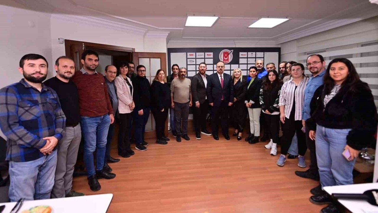 Aydın Büyükşehir Gazeteciler Cemiyeti Başkanı Ümit Özmen de ziyaretten dolayı Vali Canbolat’a teşekkür ederek hediye takdiminde bulundu.
