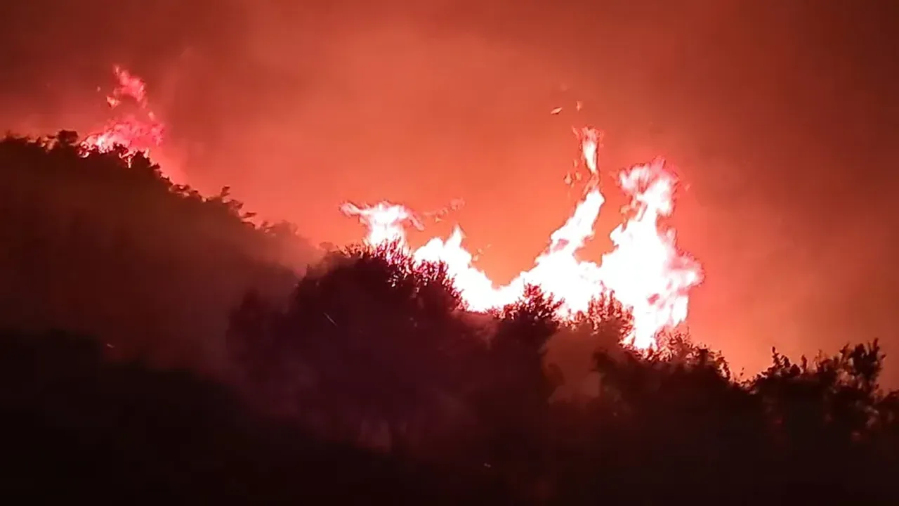 Gecenin karanlığını kızıla boyayan alevler, sadece ormanlık alanı değil, bölgedeki değerli zeytinlikleri de yutarak hızla yayılmaya devam ediyor.