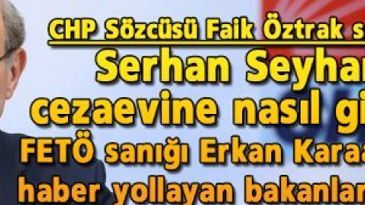 Komik CHP Sözcüsü Faik Öztrak, Serhan Seyhan'ın cezaevine nasıl girdiğini ve FETÖ sanığı Erkan Karaaslan'a haber yollayan bakanların kim olduğunu sordu? 16.05.2019 - 12:22 16.05.2019 - 12:22 Abone Ol Gelişmelerden haberdar olmak istiyor musunuz? Google News’te Aydınpost sitemize abone olun. Abone Ol